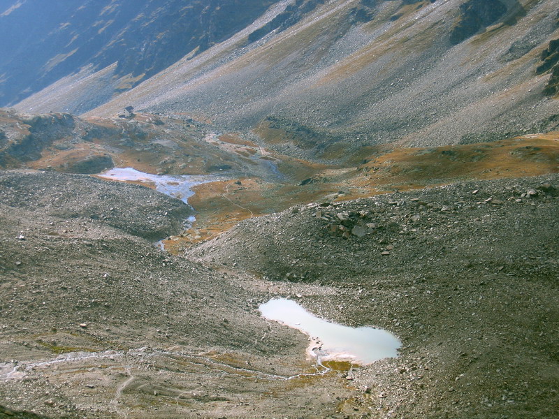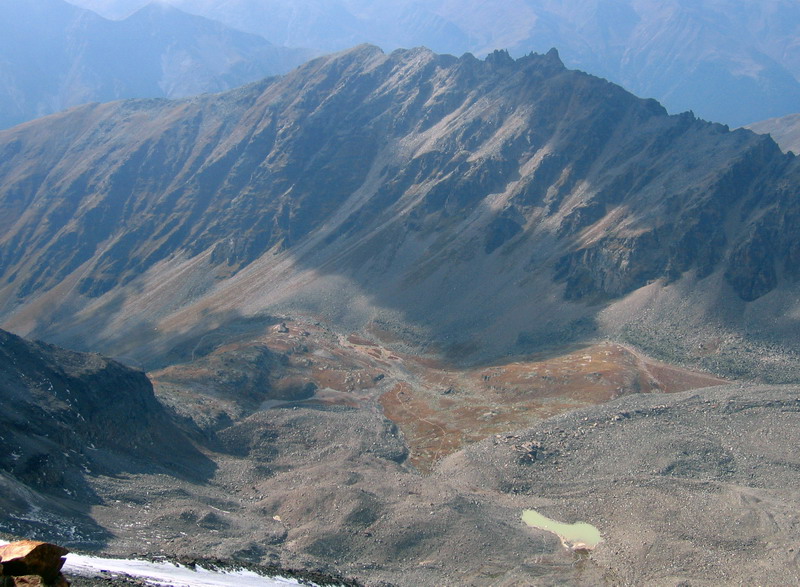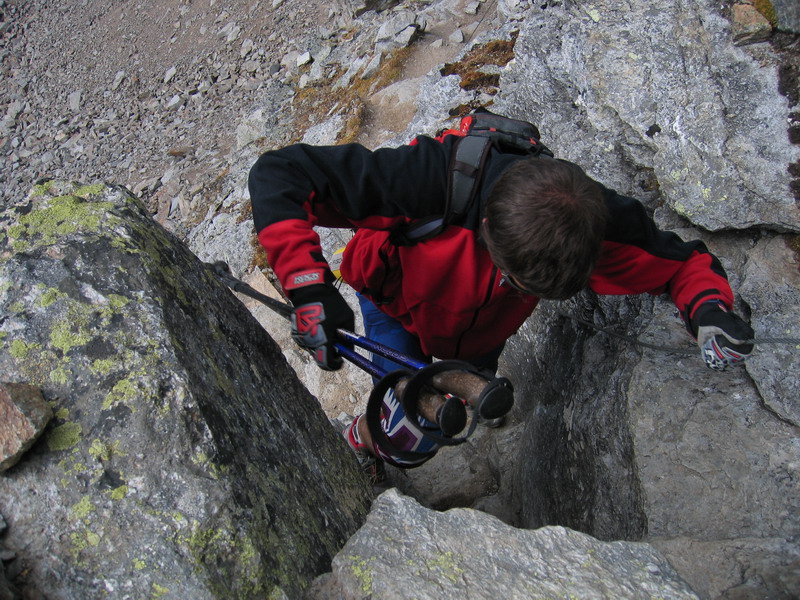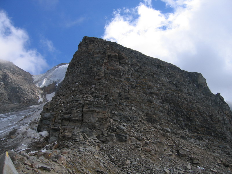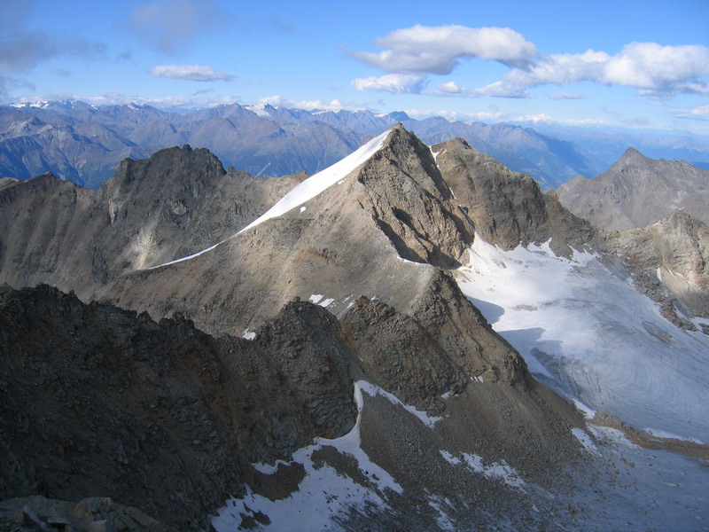 Ďalej pokračuje výstup po suťovom hrebeni okrajom ľadovca. (pozor na voľné kamene) Na vrcholovom hrebeni je ešte niekoľko úsekov, kde si treba dať pozor. Ja som výstup absolvoval v septembri za výborných podmienok. Neprechádzal som žiadne snehové polia. Podmienky však nemusia byť vždy ideálne a prípadné snehové polia, námraza alebo čerstvý sneh by dokázali túto ináč celkom pohodovú trasu skomplikovať.