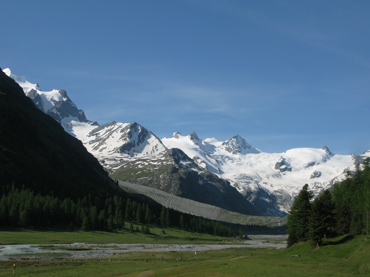 Berninské Alpy s najvyšším vrcholom východných Álp Berninou (4048m) sa nachádzajú na juhovýchode Švajčiarska na hraniciach s Talianskom. Neďaleko známeho St. Moritzu sa dajú nájsť pekné kopčeky pokryté ľadovcami, rozvrásnené ľadovcovými trhlinami, jednoducho divočina ako sa patrí... Nie nadarmo sa hovorí o alpských končiaroch ako o poslednej divočine v strede Európy.