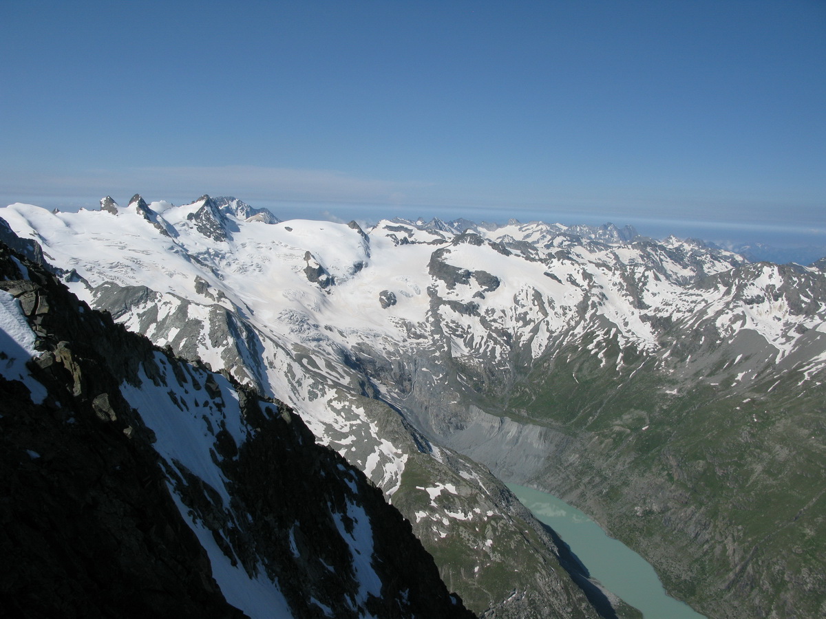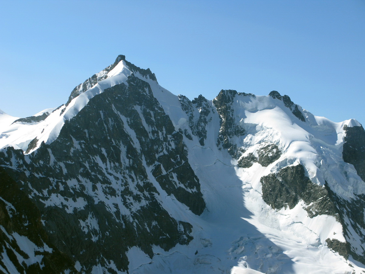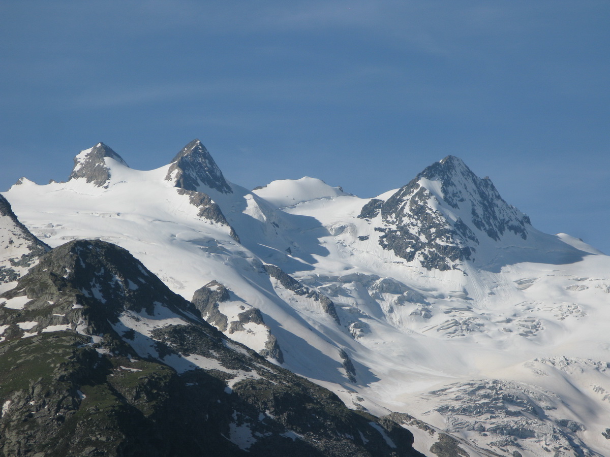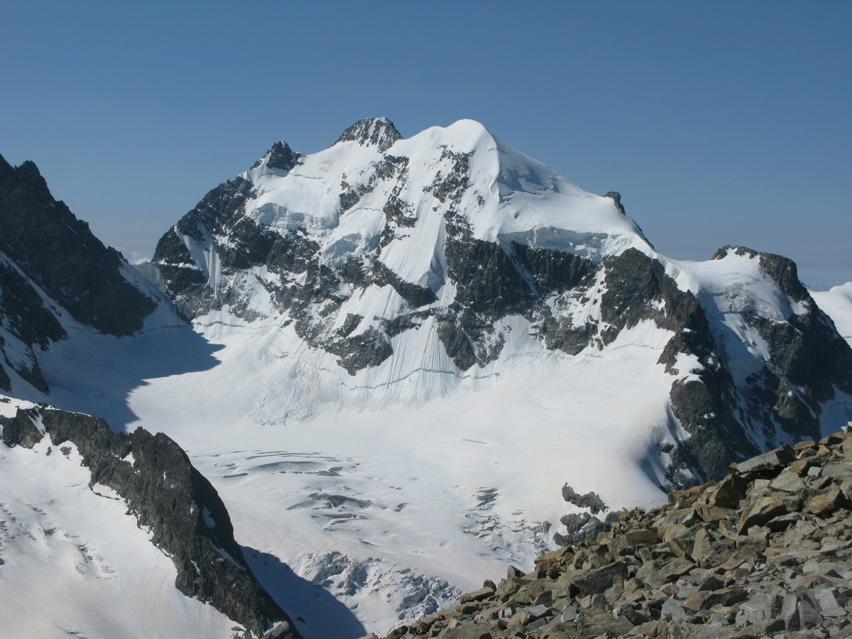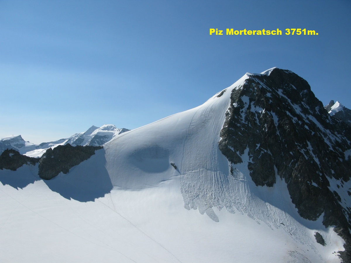 Z vrcholu Morteratschu sú celé Berninské Alpy ako na dlani, ale najkrajší a najdôležitejší výhľad je práve na Biancograt a Berninu. Medzi fotkami si nájdete aj Piz Palú (3900m). Ďalší základný berninský vrchol...