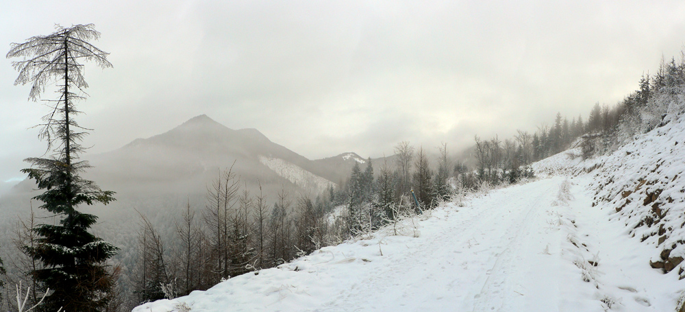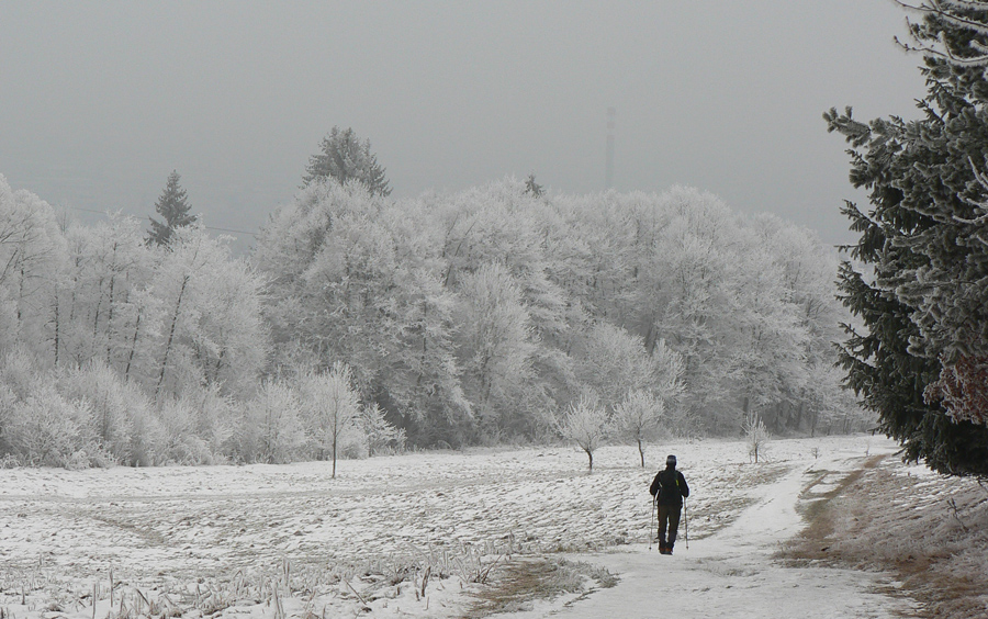 Bol to čas tesne predvianočný, sivý, ešte bez snehu v kotlinách. Aj cez deň prítmie vďaka dvojitej prikrývke: dole inverzná hmla, hore prichádzajúci front. Ale vyvenčiť telo treba...
