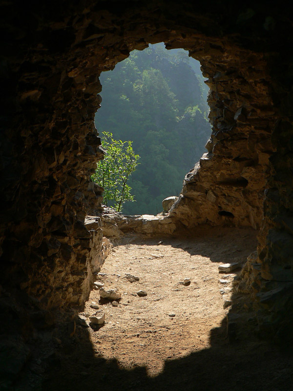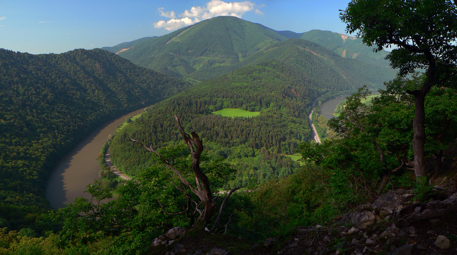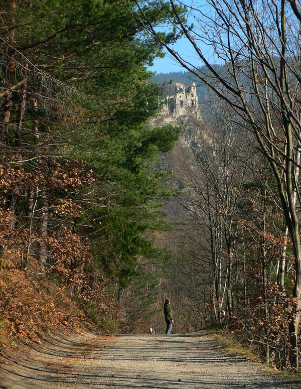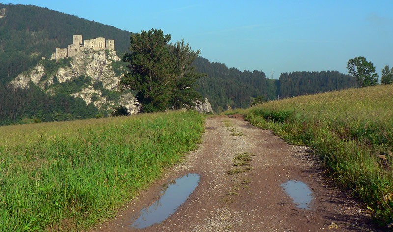 Na začiatok hrad Strečno, ale len po pravej ruke za Váhom, takže v celej paráde. Poľná cesta z dediny sa točí popri štreke na juhovýchod, hrad mizne vzadu, hluk z cesty verne ostáva, a to ešte dlho. Už aby bol ten tunel! Pod ústím Hradskej doliny býva ráno medveďno, tak popod les treba opatrne a kto sa bojí, ide malou okľukou po ceste. V doline: dole v ústí malé táborisko a skratka na hrad, vyššie nejaký blázon stavia chatu veľkosti paneláku, inak pohoda.