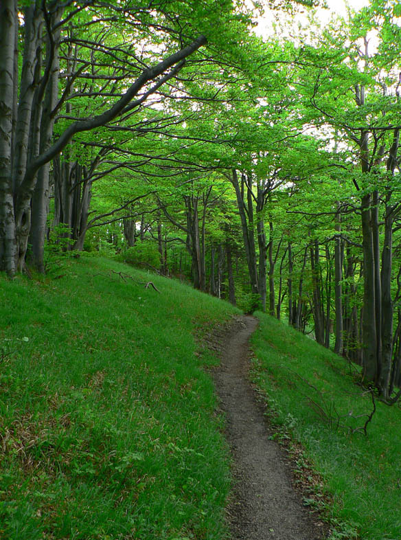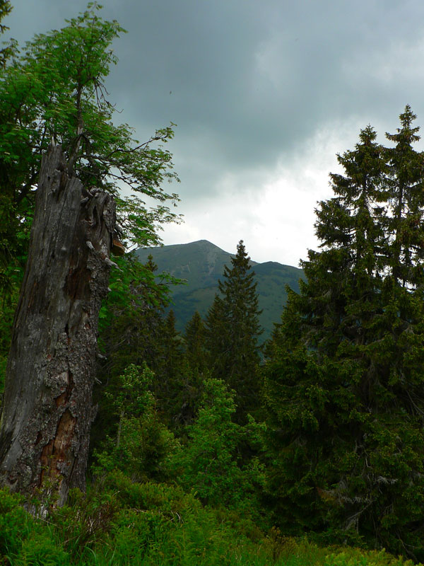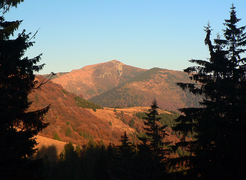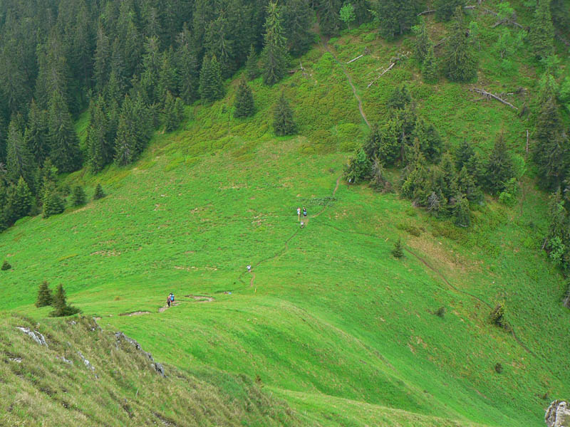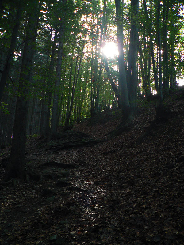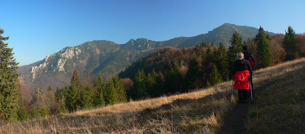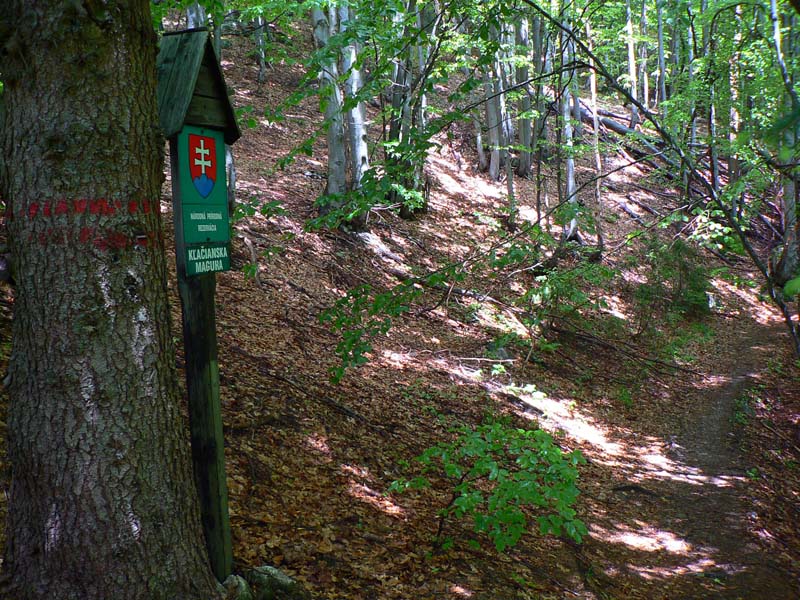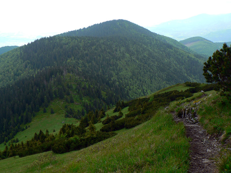 Nasleduje zostup - exkluzívne strmý, tak na 20 minút, do sedla pod Suchým. Odtiaľ ešte pár hupáčikov riedkym vrcholovým lesom a mierny pokles pralesom k ďalšej chate, pod Kľačianskou Magurou. Tak na hodinku. Na chate treba nechať kolená oddýchnuť, popiť nejaké výživové doplnky, lebo nasleduje to najnajnaj, čo majú na konci túry všetci radi - strmé, nekonečné, ale najmä nekonečne nekonečné klesanie v ústrety Turčianskej kotline. A chodník je tu frekventovaný, takže za mokra sa šmýka na blate, za sucha na prachu.