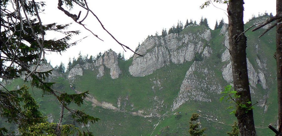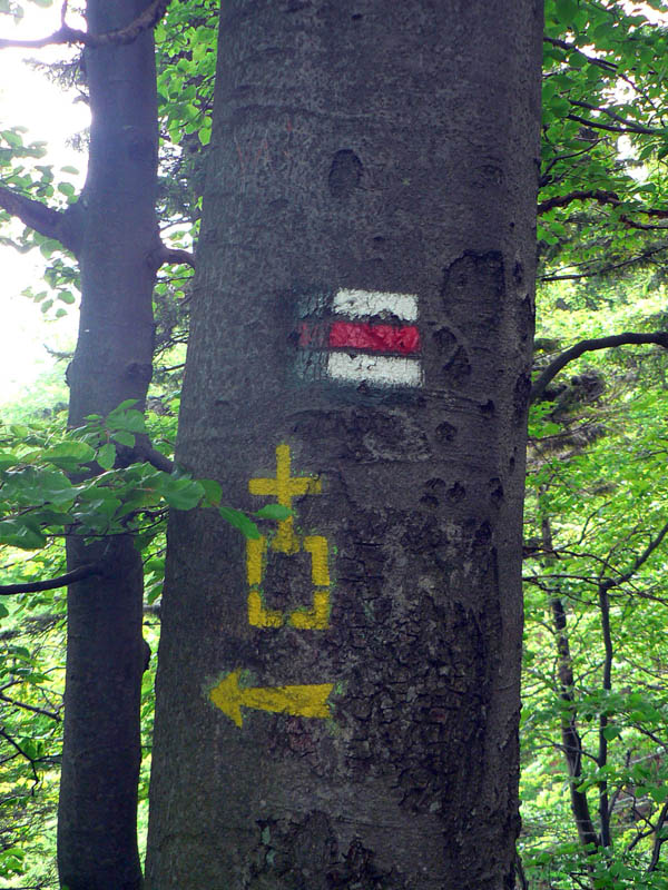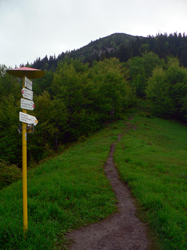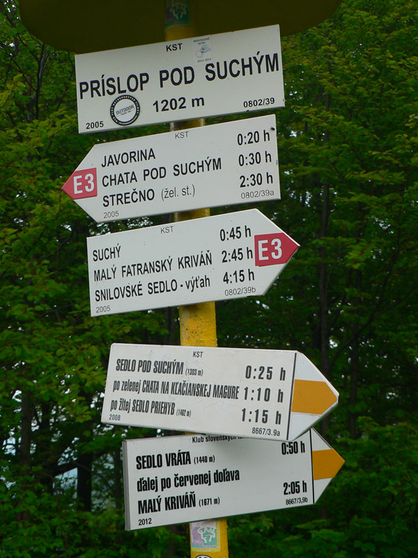 Z hradu nasleduje monotónne a prudké stúpanie po zalesnenom hrebeni. V dolnej časti je ešte spestrené dvoma vyhliadkami - nazad na Starhrad a na protiľahlý Domašín aj s meandrom Váhu. Keď sa svah konečne položí, chodník vybehne na zvážnicu a o nejakých 20 minút sa objaví chata pod Suchým. Na Suchý je to ale ešte výživná hodinka a pol - najprv po zjazdovke (sklon asi ako Hahnenkamm, len je to kratšie). Potom miernejšie po pekných vrcholových lúkach a lesíkoch, okolo „horského kostola“ a sranda zas raz končí pri smerovníku Príslop pod Suchým, kde sa treba rozhodnúť.