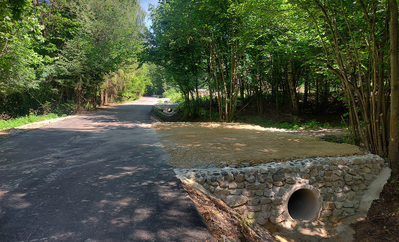 Pohoda skončila po nejakých dvoch kilákoch a začalo to, kvôli čomu som tam išiel: komplet nová cesta, hrubý makadam ešte neujazdený, krajnice holé od bagrovania. Proste estetika nulová, jazdenie drina. Takže na križovatke doprava a hore, lebo doľava dole sú stavebné úpravy už staršieho dáta a zeleň už surovosť cesty zjemnila.