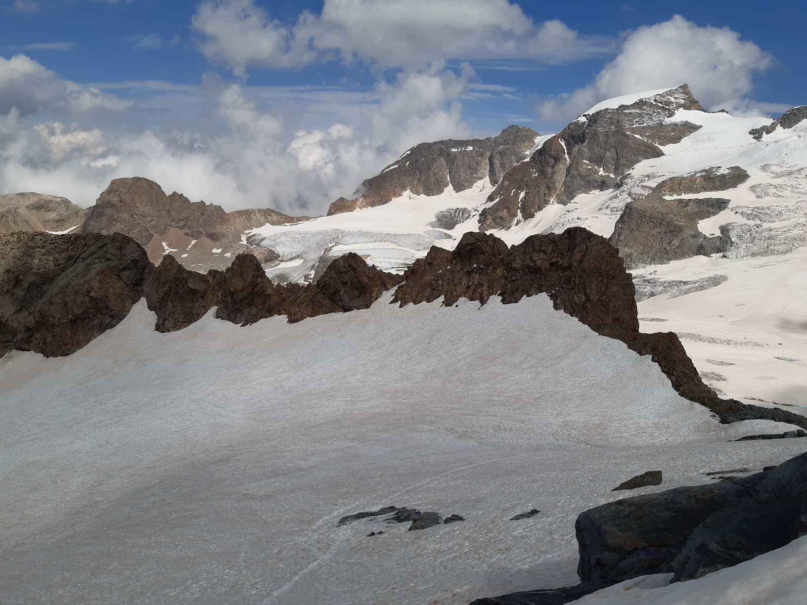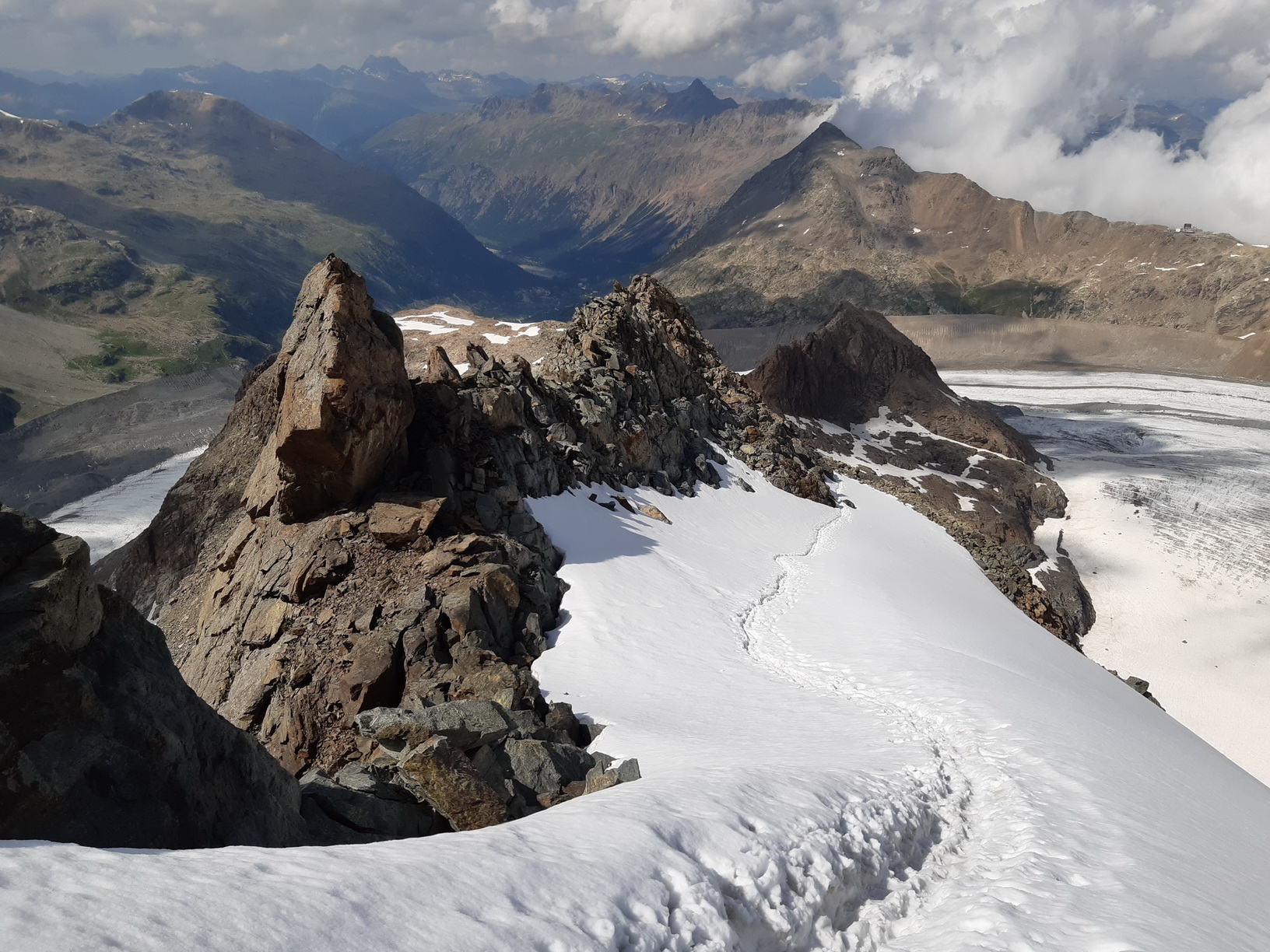 Za tie roky môjho pôsobenia v oblasti som tadiaľto išiel iba raz keď som v dobrých zimných podmienkach s lyžami Fortezzu obišiel po ľadovci. Niečo podobné je ale možné iba v naozaj dobrých podmienkach konca zimy. Od mojej túry už prešlo asi 8 rokov a ľadovec sa výrazne zmenil k horšiemu. Aj preto som už dlhšie mal na pláne v rámci jedného rýchleho výpadu preskúmať samotný hrebeň, tak aby som ho dobre spoznal a vedel sa naňho pripraviť v prípade nejakej túry do oblasti.