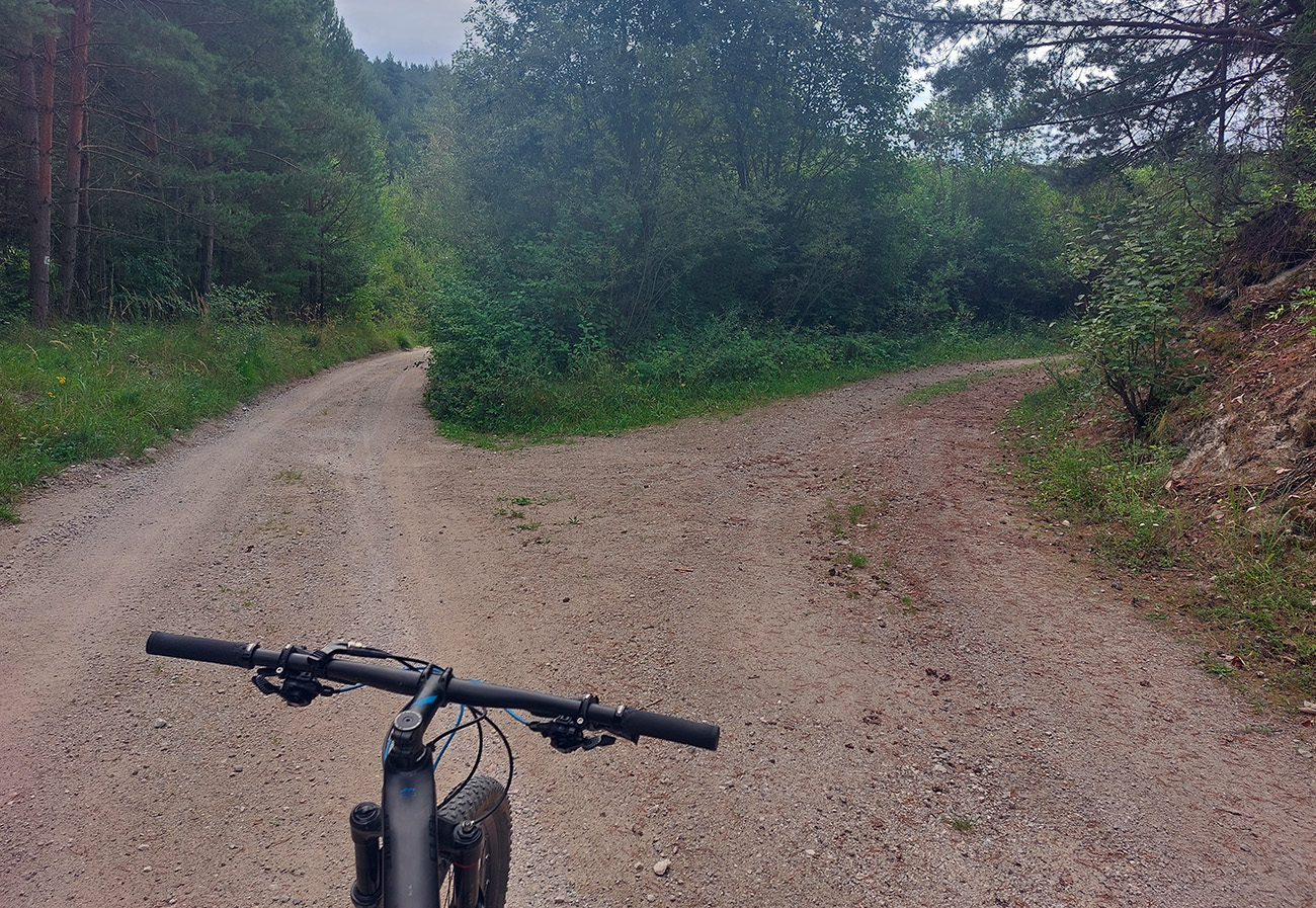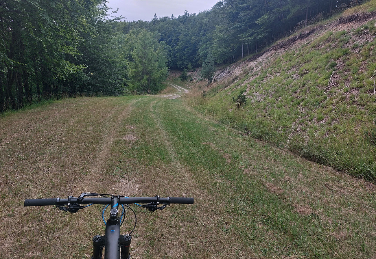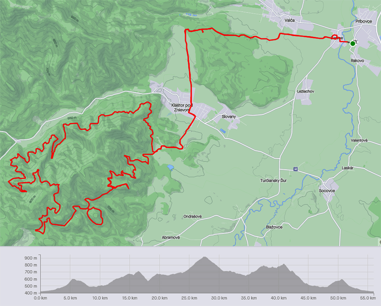 Popis celej tej ružovej trasy by bol zbytočný, návod je pri fotkách v galérii a na tej mapke tu vyššie. Strava zblbla, tak ani gpx nemám, len mapku s profilom som stihol vyrobiť. Tak len pár faktických poznámok. Dal som si také „základné“ kolečko, asi tridsaťkilometrové, ale v tom priestore medzi Kláštorom, Vríckom a Poleriekou sa dá najazdiť hodne vyše stovky, možností je tu neúrekom. A takmer všetko komfortné lesné cesty s nie veľkými sklonmi (až na záverečný výjazd z lesa), kde pod kolesami škvrčí jemná šotolinka, niekde by si to aj žiletka vychutnala, taký je podklad miestami hladký. Mtb tu ozaj netreba (preto aj ten názov).