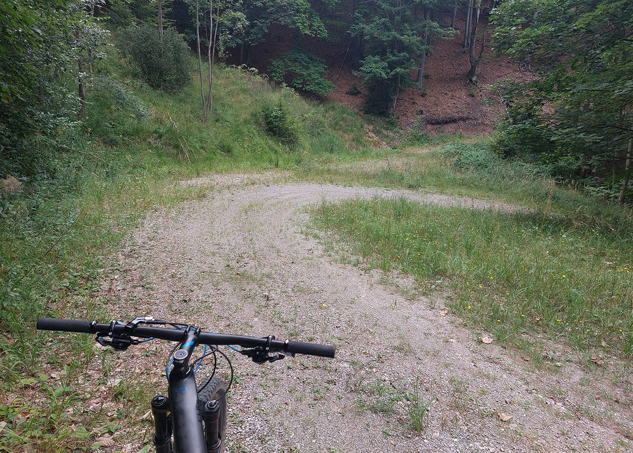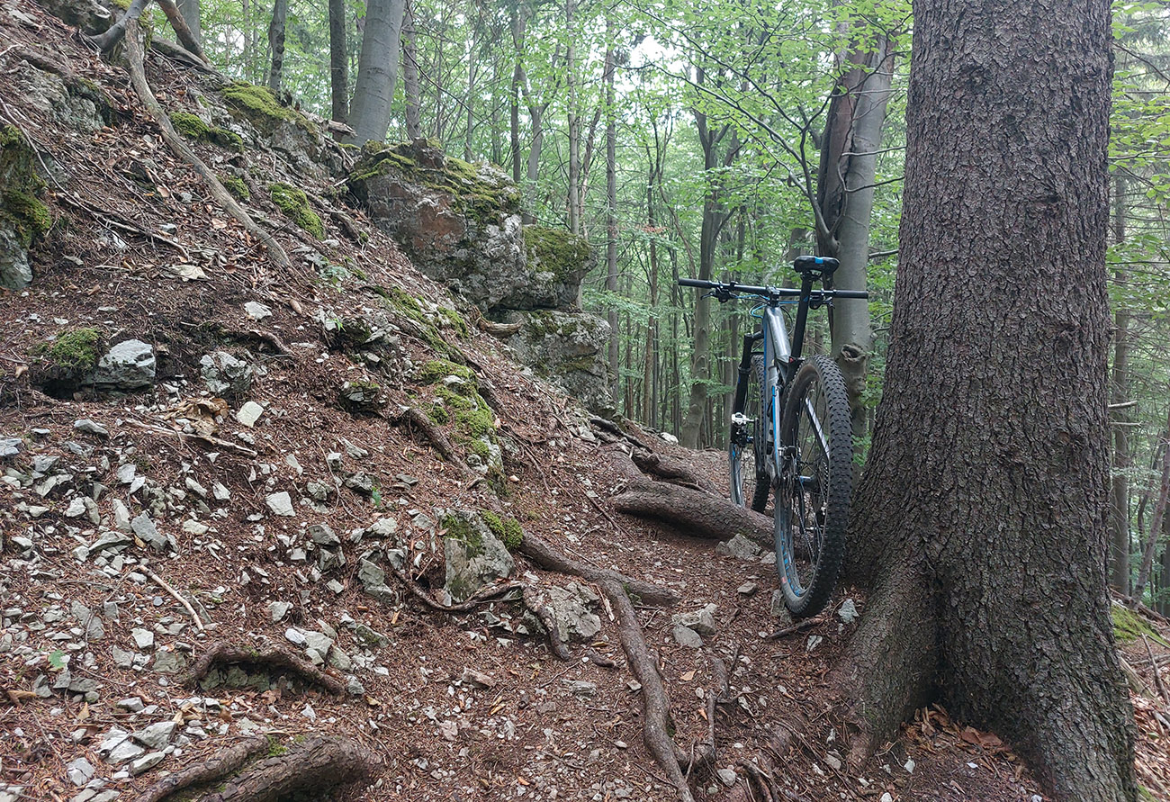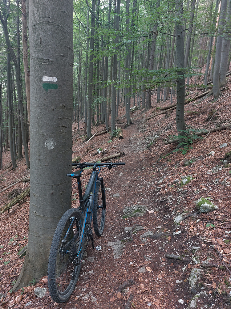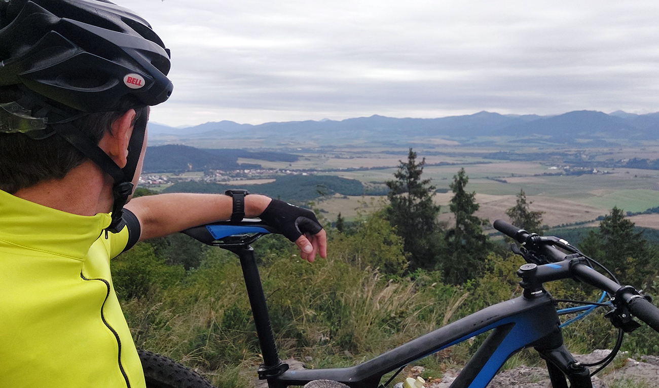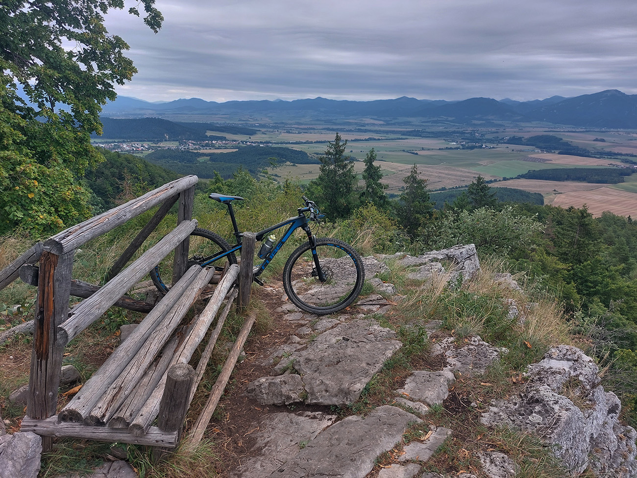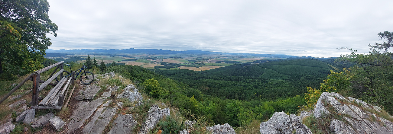 Čo tu niekomu možno bude chýbať, sú výhľady. Len ojedinelé - vtedy, ak v hradbe stromov pod cestou chýba pár kusov. Zašiel som si preto za nejakými širšími (na Turčiansku kotlinu) aspoň v západnej časti okruhu – najskôr krátke koliečko okolo poriadne vyholeného kopčeka Žiar (757 m), potom o kúsok ďalej odbočka na vyhliadku z Ondrašovských skál. Singlík z cesty na vyhliadku je zároveň jediné technickejšie miesto v širokom okolí, bajk treba miestami aj potlačiť. Čo naopak nechýba, je voda, tie traverzové cesty sekajú každú chvíľu nejaký potok alebo pramienok.