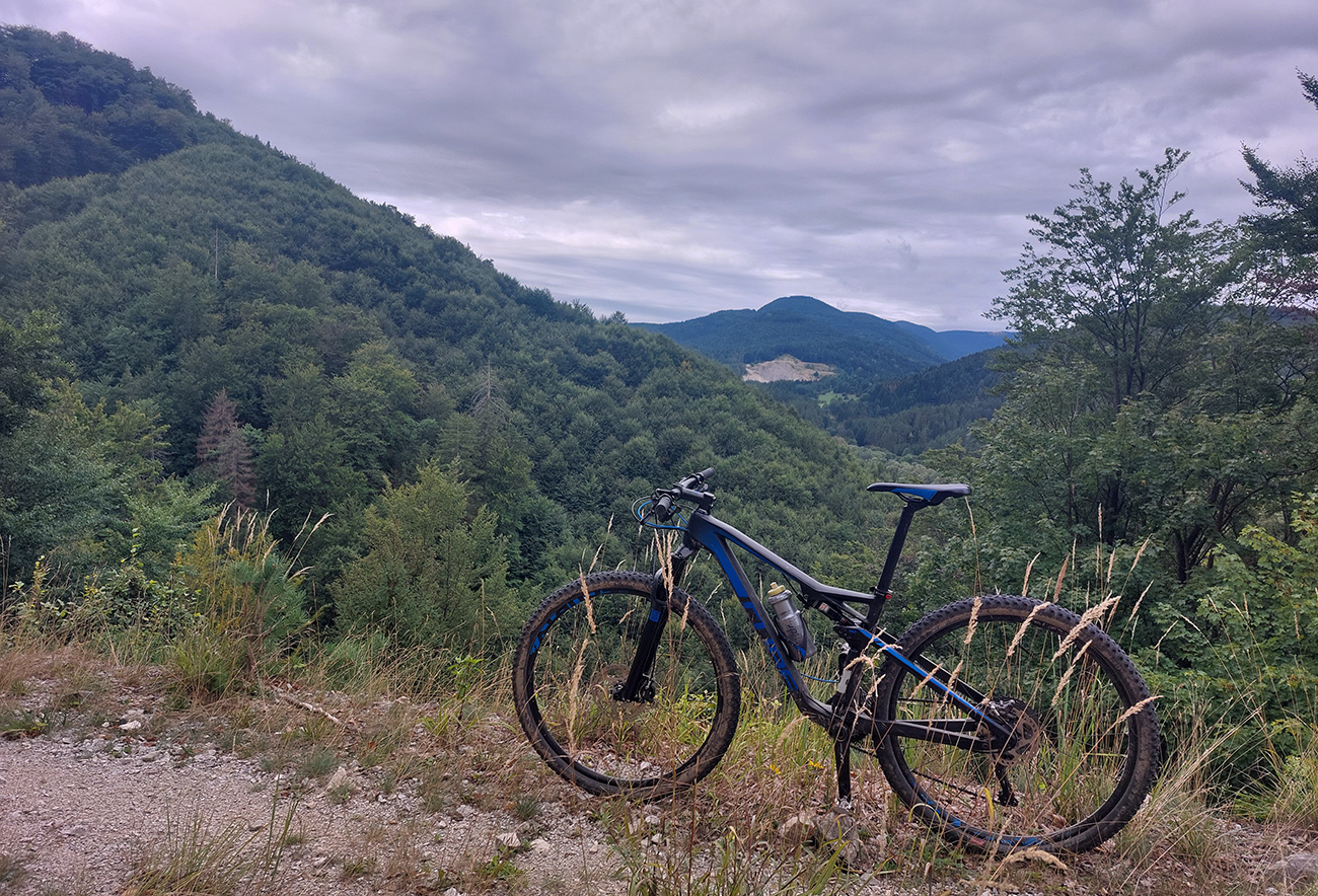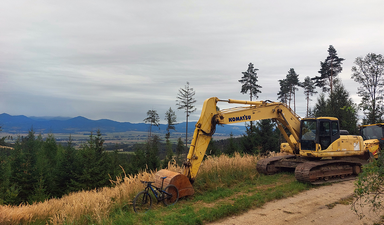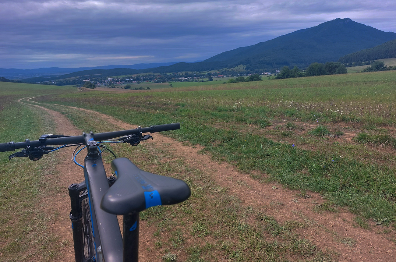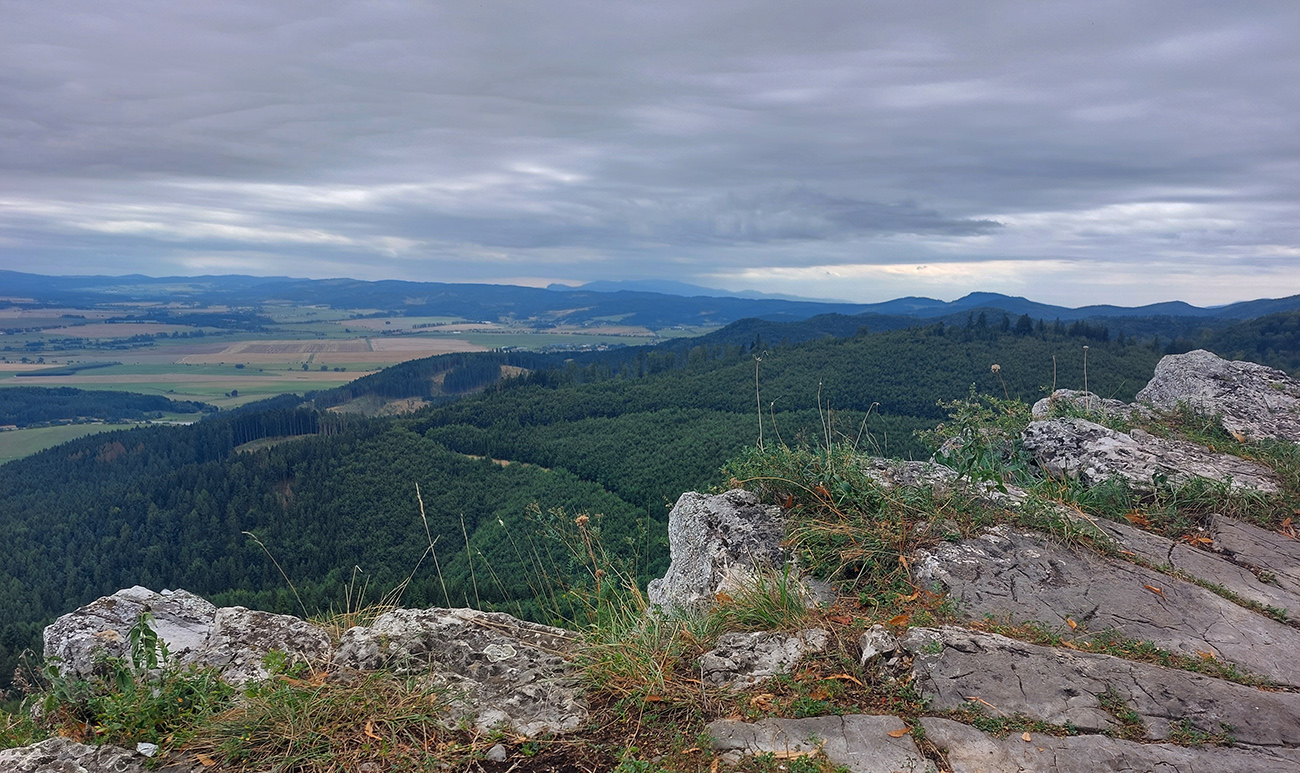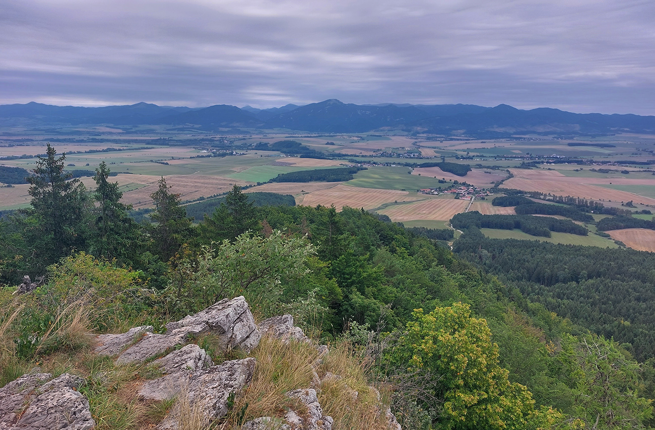 Čo tu niekomu možno bude chýbať, sú výhľady. Len ojedinelé - vtedy, ak v hradbe stromov pod cestou chýba pár kusov. Zašiel som si preto za nejakými širšími (na Turčiansku kotlinu) aspoň v západnej časti okruhu – najskôr krátke koliečko okolo poriadne vyholeného kopčeka Žiar (757 m), potom o kúsok ďalej odbočka na vyhliadku z Ondrašovských skál. Singlík z cesty na vyhliadku je zároveň jediné technickejšie miesto v širokom okolí, bajk treba miestami aj potlačiť. Čo naopak nechýba, je voda, tie traverzové cesty sekajú každú chvíľu nejaký potok alebo pramienok.