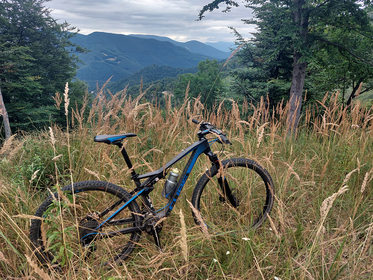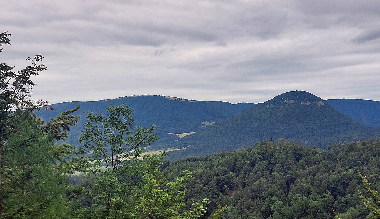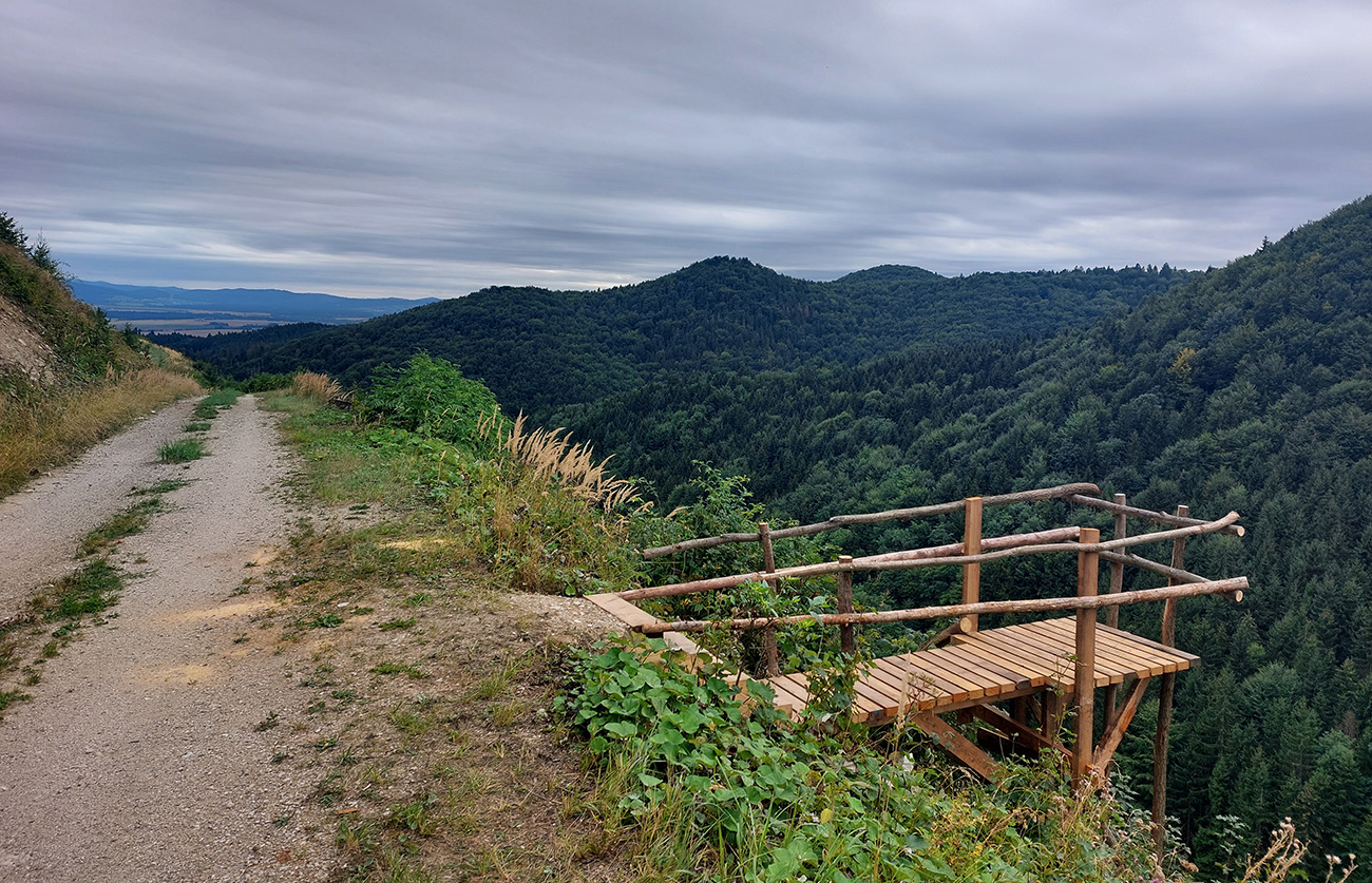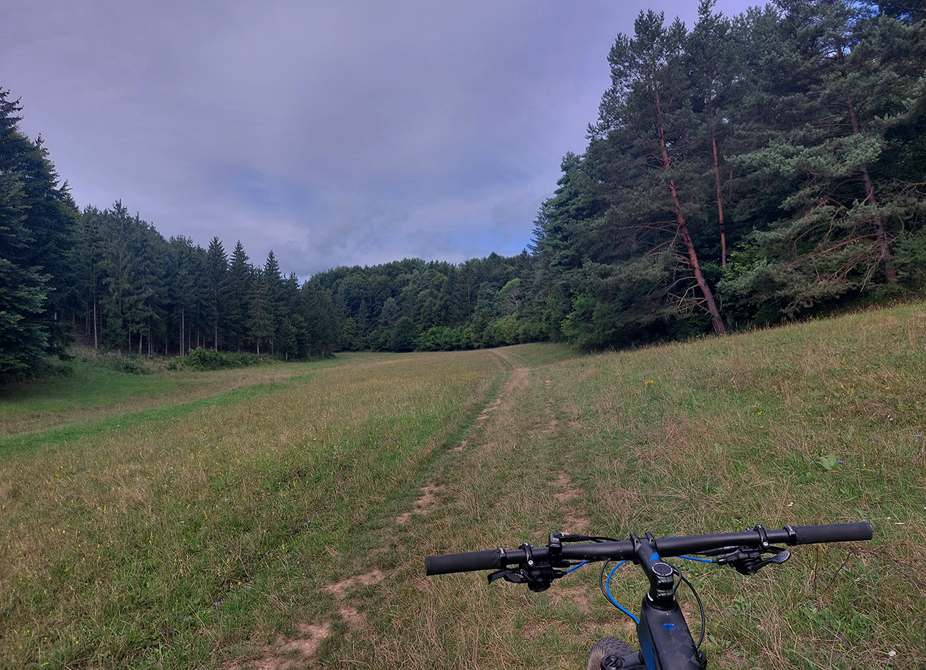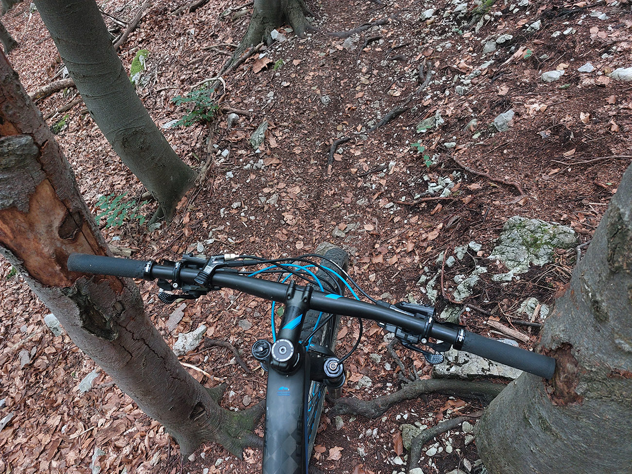 Čo tu niekomu možno bude chýbať, sú výhľady. Len ojedinelé - vtedy, ak v hradbe stromov pod cestou chýba pár kusov. Zašiel som si preto za nejakými širšími (na Turčiansku kotlinu) aspoň v západnej časti okruhu – najskôr krátke koliečko okolo poriadne vyholeného kopčeka Žiar (757 m), potom o kúsok ďalej odbočka na vyhliadku z Ondrašovských skál. Singlík z cesty na vyhliadku je zároveň jediné technickejšie miesto v širokom okolí, bajk treba miestami aj potlačiť. Čo naopak nechýba, je voda, tie traverzové cesty sekajú každú chvíľu nejaký potok alebo pramienok.