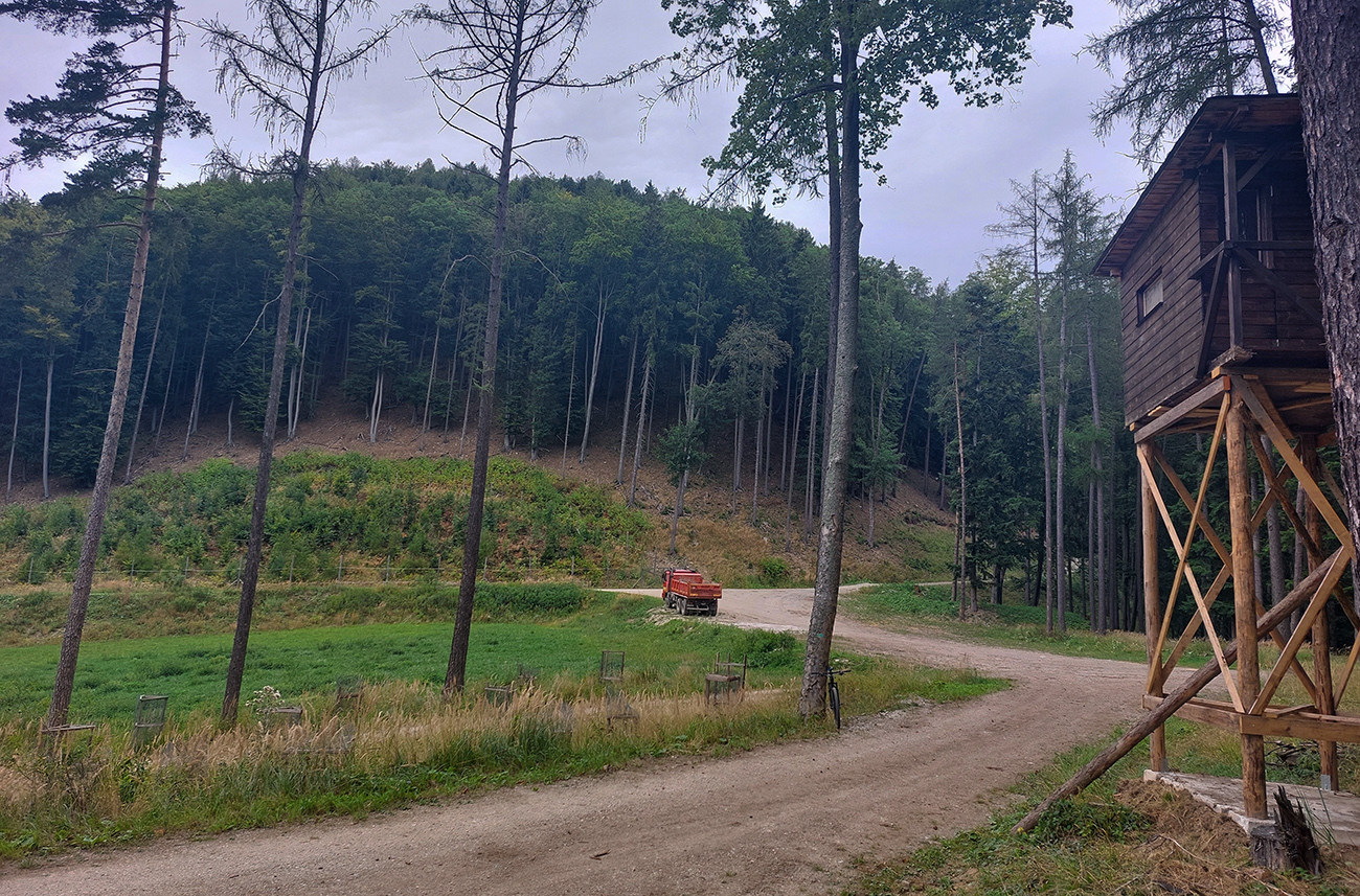 Na niektorých miestach tých ciest rastie v strede a na okrajoch riedka, vysoká tráva, zväčša sú však pod kolesami široké a rovné „strade bianche“ s ozaj dosť pevným povrchom. Dobre že sú "bianche", aspoň na nich dobre vidieť početné medvedie kôpky. Je tu popri cestách dokonca zopár malých vodných nádržiek, doslova lákajú okúpať sa, lebo sú nové a voda v nich je ešte krásne čistá, dno nezabahnené. Nové posedy a iná snajperská infraštruktúra na každej zákrute – také je to tu vybudované, až sa bojím, či si to tu panstvo časom neoplotí. Zatiaľ len rampy ako proti tankom.