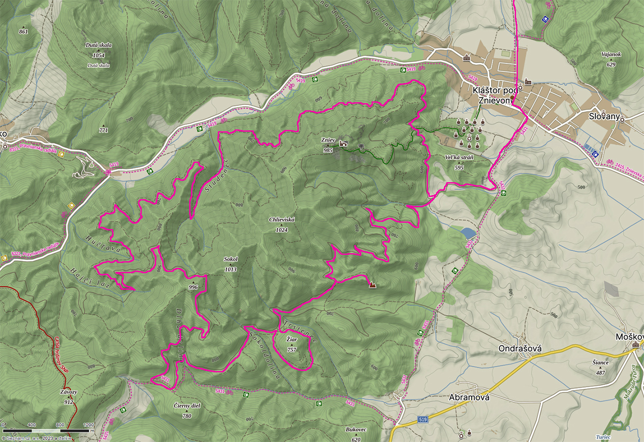 Najsevernejší a najvyšší podcelok pohoria Žiar sa volá Sokol, podľa druhého najvyššieho kopca v ňom. Najvyššie sú ale susedné Chlieviská (1024 m), no oveľa známejší je Zniev (985 m), tretí do počtu, na ktorého temene leží zrúcanina druhého najvyššie položeného hradu u nás. Pod ním, dole v podhorí, na západnom okraji Turčianskej kotliny sa krčí Kláštor pod Znievom, kedysi významné mestečko. Toľko na úvod ku miestopisu, nech je jasné, kde sme. A sme tu preto, lebo aj pri pohľade do mapy (najlepšie leteckej) je pekne vidieť ten kontrast zelených lesov a bielych, širokých, kľukatých lesných ciest, ktoré v podstate obtáčajú celý masív dookola v rôznych výškach. Boli tam vždy, len nejaké nedávne roky dozadu ich lesáci začali podstatne rozširovať a opravovať a tieto jazvy v súvislej zeleni sa zabeleli o dosť intenzívnejšie. Zhora z hradu ich vidieť najlepšie. Dobrý prehľad o nich sa dá spraviť napríklad podľa pohľadu na Mapy.cz: