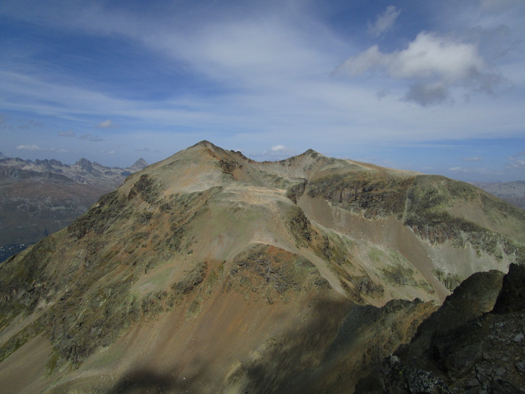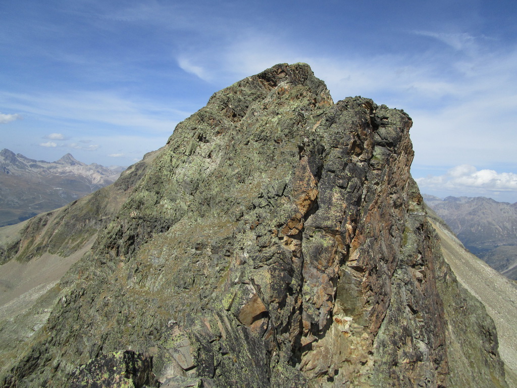 Prichádzam na vrchol. Zostup mám nacvičený a teším sa, že problémy sú za mnou. Na tento hrebeň sa už vracať nebudem, raz stačilo. Nasleduje koncentrácia pri zliezaní z vrcholu a prichádzam k chate vo Fuorcla Surlej.