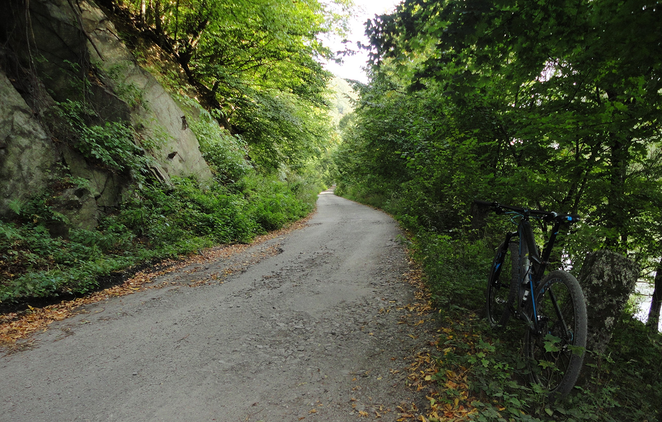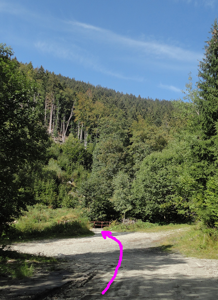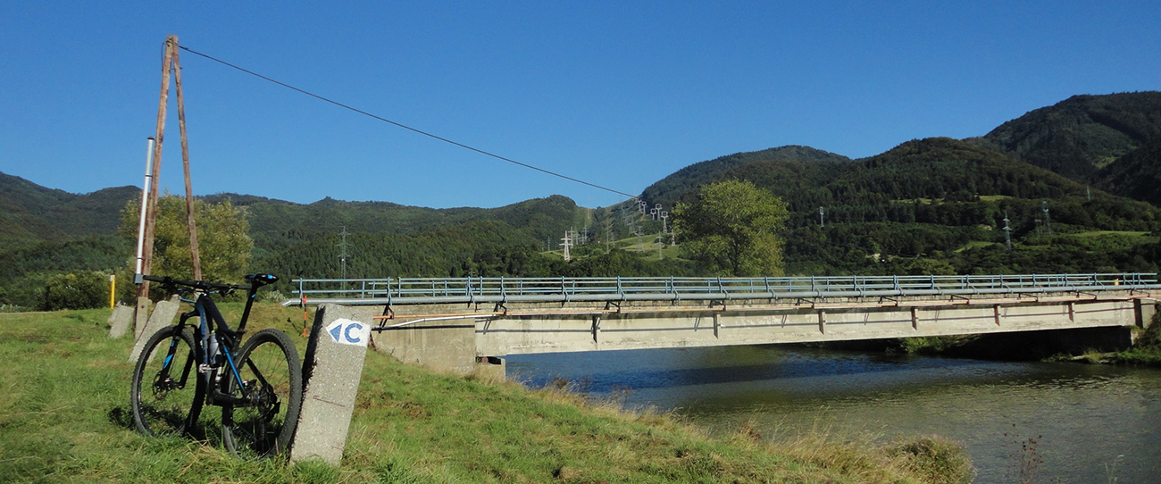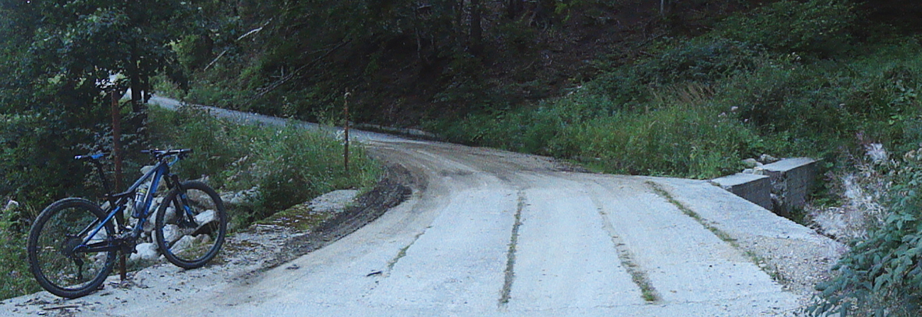 Vtip preto, lebo nasleduje zjazd po nádherne širokých, nových a betónom dobre vystužených serpentínach, na konci ktorých čaká znovu poriadna dávka budovateľského folklóru v podobe dopravných značiek a poučných tabúľ. Už pred pár rokmi som sa pri pohľade z protiľahlého veľkofatranského Kľaku čudoval, čo to pod Kriváňom tak bielo svieti. Po poslednej serpentíne už valím dole popri potoku už bez zákrut a na výraznej križovatke točím doprava - popri eurotabuli, informujúcej o zvyšovaní konkurencieschopnosti a bla bla bla. Dalo by sa aj nižšie odbočiť, ale vyšiel by som z národného parku, to nie!