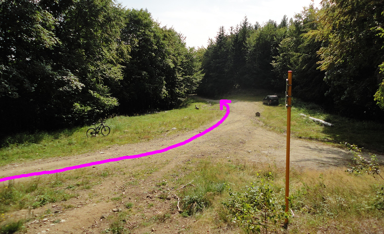To znamená, že začína posledný seriózny výšľap na trase: poriadne dlhý, až pod Kýčeru, priamo na hrebeň medzi Magurou a Panošinou. Asi 200 hrboľatých výškových metrov. Bacha, jazdia tu aj autá! Síce to všade... Hore je odmenou výhľad na Suchý a mierny, krátky zjazdík do sedla Príslop. Od jeho smerovníka je to k výčapu na chate asi 15 minút, do kopca.