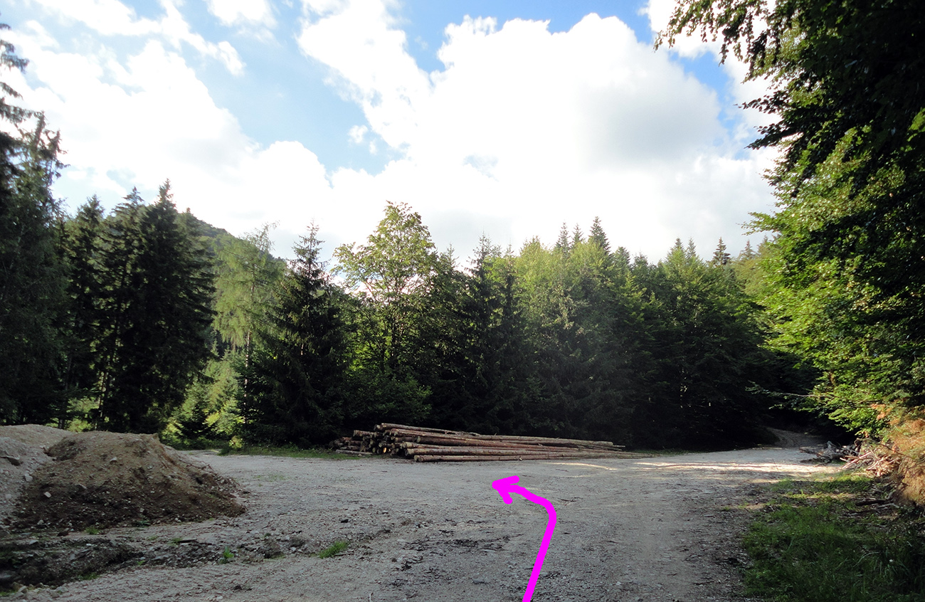 Tentokrát ale nejdem dole dolinou, ale cez mostík do protisvahu, do ďalšieho stúpania. Ako inak, po zvážnici - smerom na juh, ponad dolinu. Mierne. Cestou je jediná výrazná križovatka, z ktorej sa dá tiež zbehnúť do Sučianskej doliny. To by som šiel rovno - ale teraz idem doprava (jediná možnosť do kopca), obtáčam kopec Vinicko z juhu. Cesta postupne pod kolesami zarastá, ako sa blíži ku svojmu koncu. Ten nastáva asi po dvoch kilákoch - a tu je to najmenej dokonalé „prepojenie“ na trase. Vpredu kríky a vybagrovaná jama, ale zjazdný chodník vidno - po jej okraji vedie „za roh“. Hádam len zo 10 metrov, a tam zrazu ďalšia, novučičká zvážnica. Čiže poriadne hnusná, hrboľatá, ešte nezarastená a s poriadne odrúbanými svahmi. Strmo klesá, serpentínou obchádza záver Kľačianskej doliny. Potom ponad „lyžiarsku chatu“ na lúke križuje zelenú značku a napája sa na cestu z Kľačian na chatu pod Kľačianskou Magurou. Asi v jej polovici.