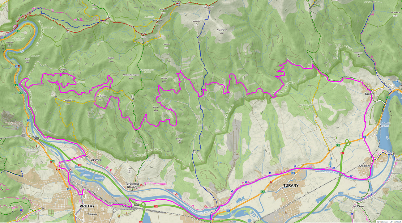 Bude to okruh so začiatkom a koncom na vrútockej stanici. Na úvod rozjazd po rovinkách až do Šútova. Po Sučany popri Váhu, na jeho ľavom brehu je príjemný „flow trail“, len bacha na srnky :-) Potom až do Krpelian po pravom brehu derivačného kanála, tiež príjemne pod kolesami. Najskôr trochu asfaltu, potom šotolina, ku koncu singlík v tráve. A už len hore kopcom po asfalte – na križovatku pri vstupe do Ratkova. Tam, za známou cestou I/18 vidno priamo vpredu poľnú cestu stúpať do kopca. Dovedie nás do Šútova, k cintorínu. Ale dá sa to obabrať aj po „osemnástke“ popri Krpelianskej nádrži, ak chce niekto adrenalín :-)