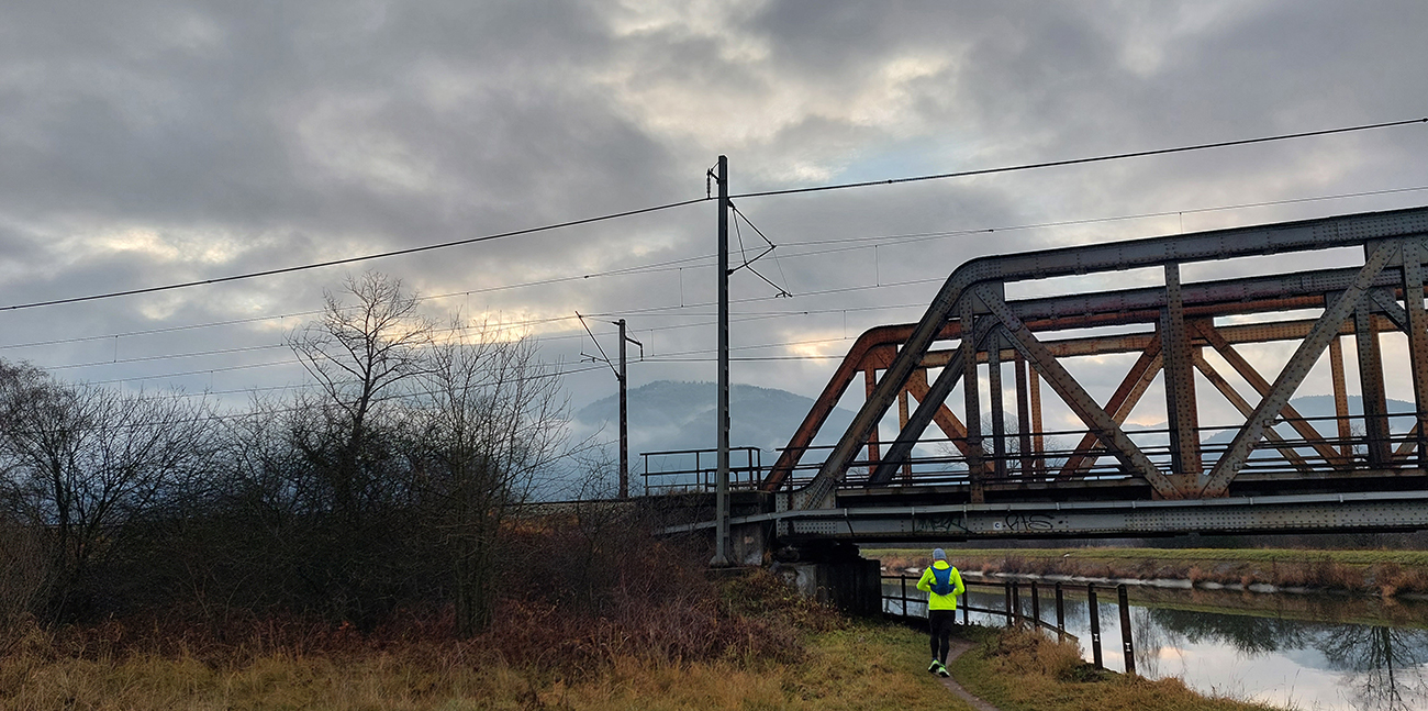 Takže začína posledný novembrový víkend – vlhkým, studeným príšerím o 6:30 na vrútockej stanici, kde zapínam hodinky. Aspoň že v noci prestalo pršať a do večera to má vydržať. O hodinu mám byť v Turanoch na moste, kde sa pripojí Majo, mal by som mať dosť času. Trochu ma zdržia rampy, trochu sa zablatím na ceste do Sučian, potom už príjemná tráva po hrádzi derivačného kanála do Turian. V závere aj trochu „kopem do vrtule“, lebo sa mi zdá, že nestíham, ale ako sa blížim k mostu, sprava sa blíži aj žiarivo žltá postavička. Dokonalé načasovanie!