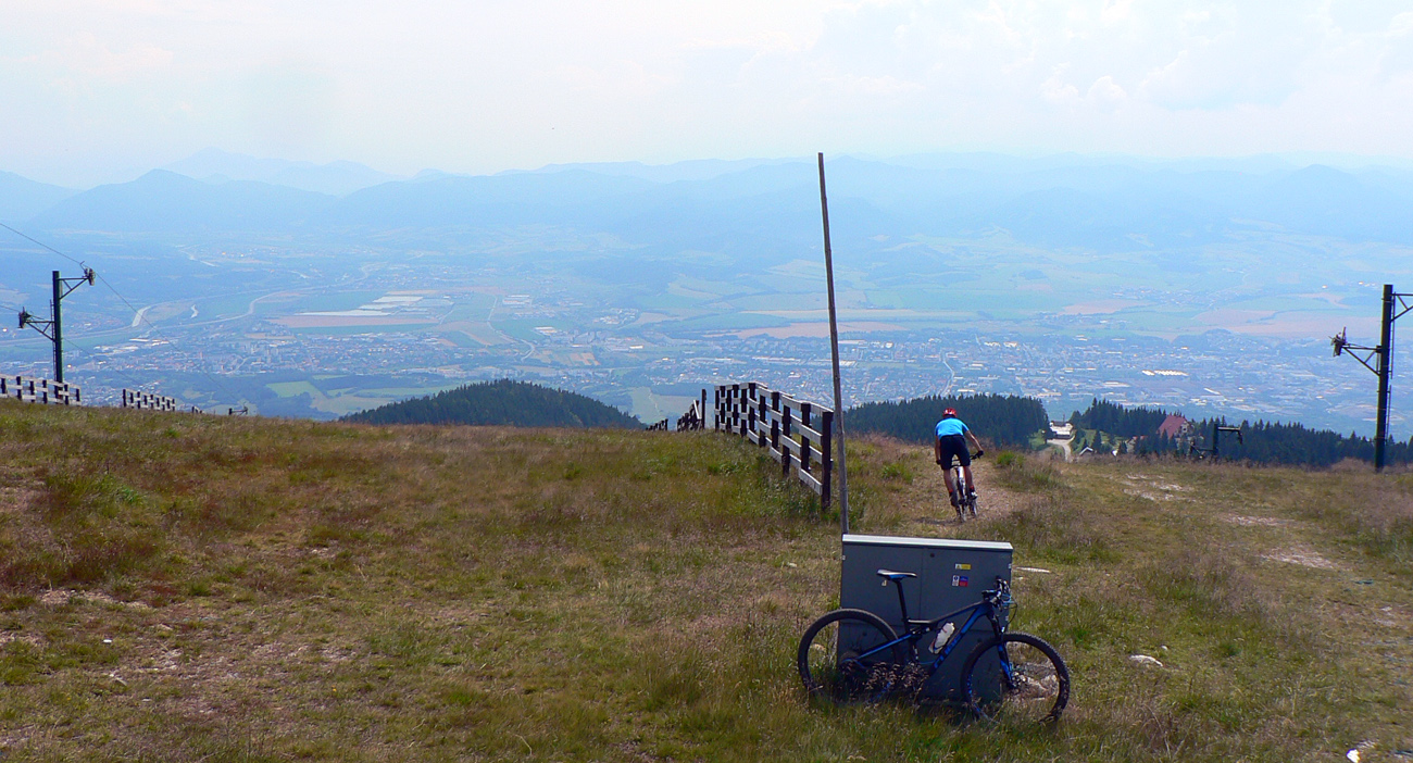 Našťastie je tu možnosť (a asi aj príjemnejšia) vydriapať sa hore na bajku. Variantov je samozrejme viac, napríklad obľúbené serpentíny zo Strání nad Martinom. Či sa dá po nejakých zvážniciach aj z rajeckej strany netuším. Asi by bolo treba pod hrebeňom dosť tlačiť. Ale kto chce naj naj prevýšenie, musí z Vrútok. Teda keď budem katastrálny detailista, tak z poriadne hlbokej Priekopy :-))) Turiec pod Partizánskym cintorínom má asi 390 m n. m. a vrchol Veľkej lúky 1476. Rátajte – dobré číslo, nie? Asi o 100 výškových ho na Slovensku prekonáva len tá Kráľova hoľa z Červenej skaly. Počítam samozrejme iba jazditeľné kopce.