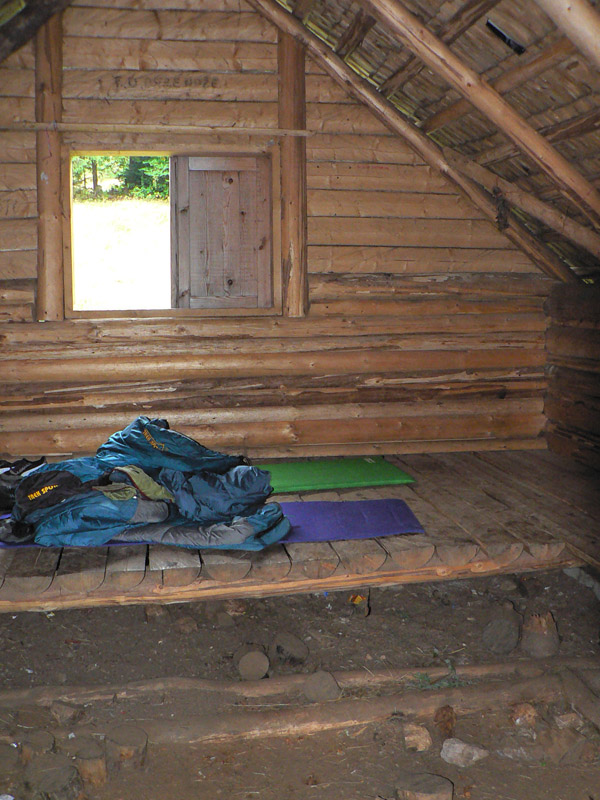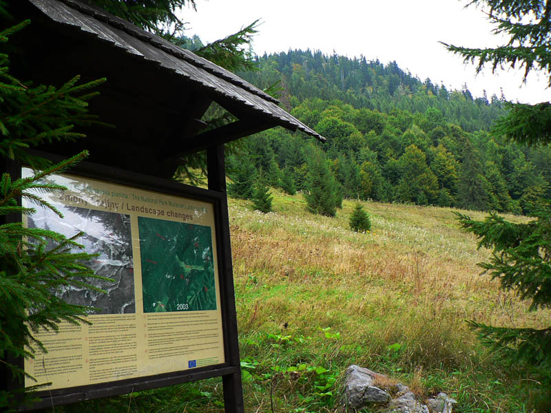 Prvý úsek je striedavo lúkami a lesom, po zvážnici k útulni Nižná Kľaková. Cestou malá odbočka na vyhliadku do Hrdzavej doliny, ale dnes sa akosi zaťahuje, opar visí vo vzduchu, nič moc výhľad „do diaľav zeme slovenskej.“ Len pilčíka počuť z hĺbky lesa. Dolina je známa najnižšie rastúcou kosodrevinou u nás, odtiaľto ale do očí bijú skôr holoruby. Začínam si zvykať... Takže návrat na cestu, ktorá je čoraz viac „roztraktorovaná“, koľaje hlbšie. Prudké klesanie a som pri útulni. Je jediná, ktorú spravuje priamo správa NP. Pekný zrub, prične, krytá terasa s jamou na ohnisko, ďalšie ohnisko vedľa na lúke. Rýchlo dokumentujem a odchádzam, aby som nerušil „kolegov“ pri raňajkách. Tu sa musím odpojiť z červenej, ale predtým ešte skúšam po nej zájsť trocha ďalej smerom na Sivákovú, či tam nebude niečo zaujímavé. Nie je, takže o 20 minút som nazad a zostupujem po žltej na západ.