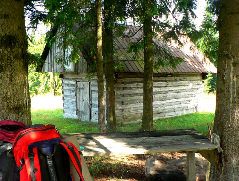 Dlhšia prestávka pri chate, olovrant a čaká nás posledný, „zvážnicový“ úsek po červenej do doliny Osrblianky. Nevieme aký dlhý bude, podľa toho kde nájdeme vhodné miesto na prenocovanie. Prvou možnosťou je prístrešok na spoji dolín, ale ten sa nám nezdá dosť „nóbl“ a je príliš otvorený pre nechcené nočné návštevy. Rozhodujeme sa skúsiť to ďalej (už je to po asfalte), ale ani v dreveniciach na Muničke nie je žiadna vhodná (teda prístupná) povala a pretože je ešte hlboký deň, šliapeme ďalej na Tri vody. Veď keby už tam žiadna šopa nebola, aj vo vysokej peci sa dá spať. A ešte keď bola prvá v Uhorsku!
