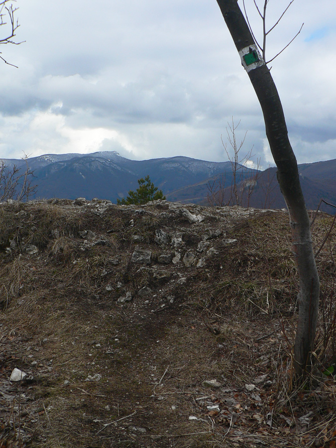 Najprv ešte lúkami a lesíkmi, potom po zelenej, turistickej, riadne strmej, až hore. Cestou výhľad – dva do kotliny, na Kláštor pod Znievom, z horného hradu výhľad na zasnežený Kľak malofatranský. A na hrebienok, ktorým sa vrátim nazad do Polerieky. Vedie cez Chlieviská a Sokol, najvyššie vrcholy Žiaru, kade nejde značka. Zato popod hrebeň tie lesné "diaľnice".
