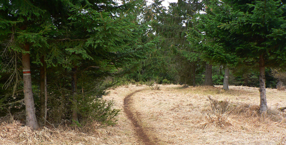 Tam, kde sa náučný chodník odkláňa v malom sedielku doľava do kotliny, pokračujem rovno, strmo hore. Chlieviská o chvíľku – najvyšší bod dnes, malá lúčka, triangulačný bod a ďalej jednoznačný hrebienok s pár výhľadmi, až do sedla pod Sokolom. Tam hnusná, nová, širokánska zvážnica krížom.