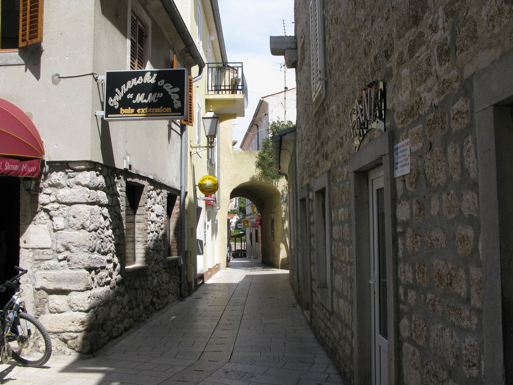 Veľmi často navštevovaný je určite aj vďaka reklame starobylý Vrbnik. Mestečko na kopčeku nad morom pôsobí zaujímavo. Prechádzka jeho úzkymi uličkami je cieľom hlavne jednodňových výletov rôznych cestoviek. Vyberanie parkovného je tu preto určite zaujímavým zdrojom príjmu. Okrem úzkych uličiek nás zaujala aj pekná pláž pri prístavnom móle. Dostať sa na ňu dá jedine prechodom cez tunel v skale.