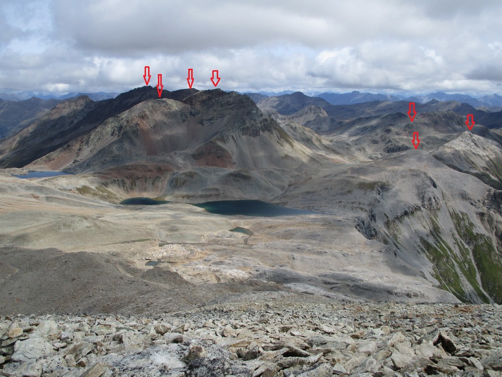 Švajčiarsko - Horný Engadin: Piz Albris 3165 m., Piz Pischa 3136 m., Piz Pruna 3152 m., Piz Sagliaint 2944 m., Piz Tschuffer 2917 m., Piz dal Fain 2907 m.