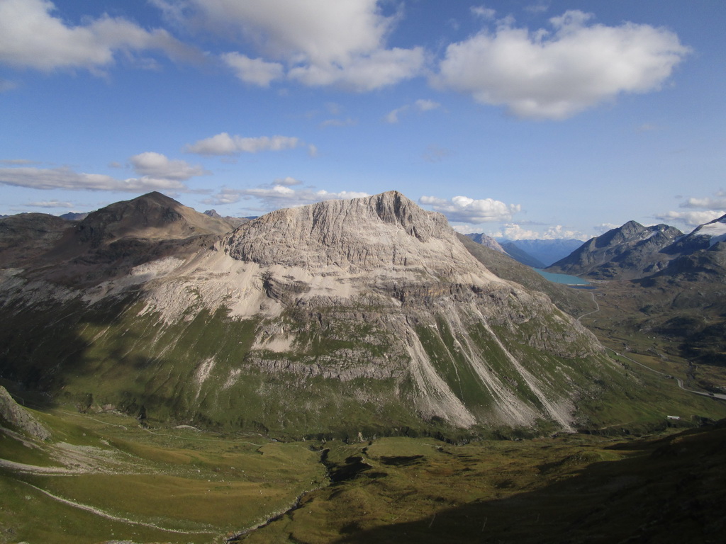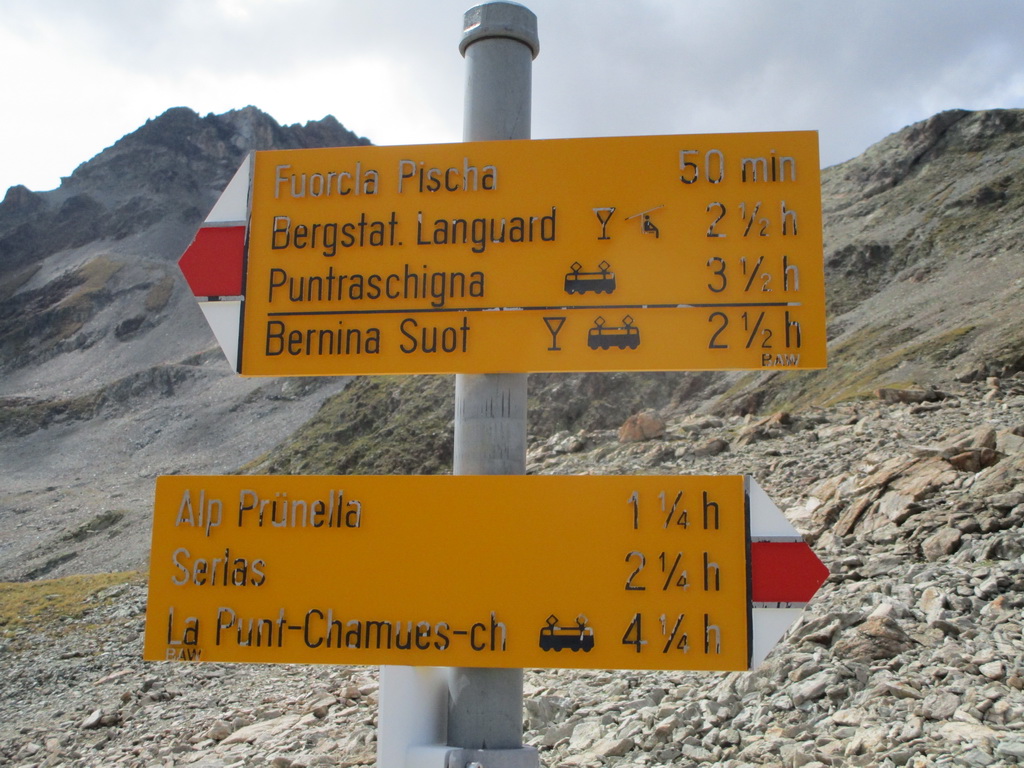 Auto parkujem na bezplatnom parkovisku pri dolnej stanici lanovky na Diavolezzu a vyrážam peši. Najprv dolinou a v nej asi po polhodine chôdze odbočujem na značkovaný chodník stúpajúci strmo hore. Ním prichádzam až na náhornú plošinu pod Piz Albris. Odbočujem z chodníka a tu sa už musím spoliehať iba na svoj odhad a čítanie terénu. Postup takýmto terénom je pre mňa zaujímavejší a zábavnejší ako po značke. Vychádzam na hlavný hrebeň a zakrátko stojím na vedľajšom vrchole. Neďaleký vrchol je totiž vyšší... Pofotím samoyebky a idem po hrebeni ďalej. Zakrátko treba liezť. Pekné lezenie, ale predsa len treba dávať pozor na voľné skaly. Pri lezení hore si dôkladne plánujem, ako to budem zliezať...