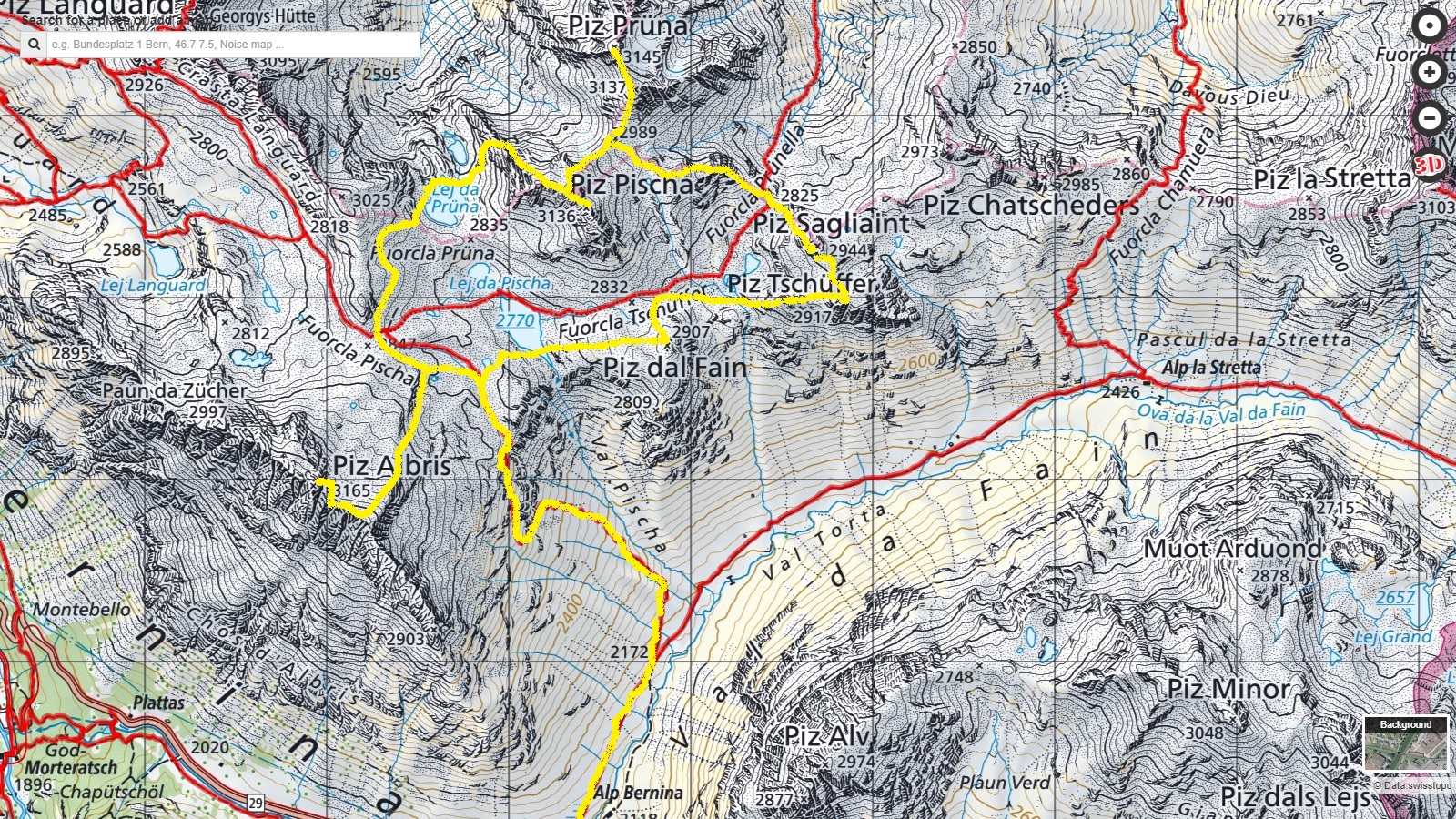 Val de Fain je hlavnou spojovaciou dolinou medzi Livignom a horným Engadinom. Vedie ňou príjemná štrková cesta končiaca v sedle la Stretta. Odtiaľ už do Livigna vedie strmý ale krátky zráz. Mojím dnešným cieľom nie je ale touto dolinou len prefrčať na bajku ako zvyčajne. Medzi Pontresinou a Diavolezzou sa vypína ostrý hrebeň Piz Albris s mnohými vežičkami. Pozeral som sa naňho zdola už pár rokov. Teraz prišiel čas pozrieť sa zhora.