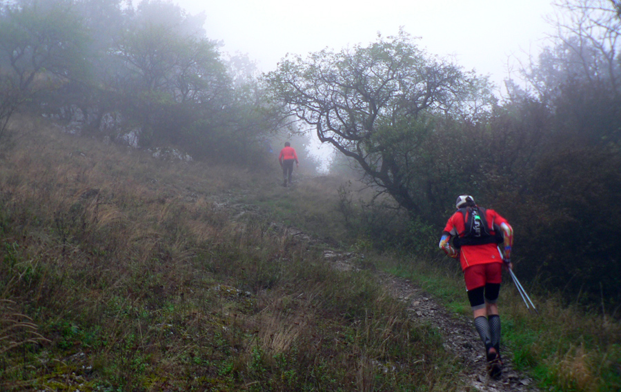 Hmla tentoraz sedela už na Zobore, Žibrici aj na Tribeči - tam sa v lese miestami dokonca zotmelo tak, že to už bolo skoro na čelovku. Pod nohami mokré lesné cesty, na rovinkách miestami dosť blata, ale vo svahoch to ani moc nekĺzalo. Bolo to väčšinou také "akurát" vlhké, že to nohy držalo a moc sa to nelepilo. Samozrejme mokré korene a zablatené kamene pri zbehu zo Zobora, zo Žibrice, z niekoľkých ďalších prudkých svahov, ale najmä na konci z Vtáčnika boli "vítaným spestrením". O bonbóniku pod záverečným Veľkým Gričom netreba hovoriť, to bolo za odmenu pre každého, čo to nevzdal :-)))