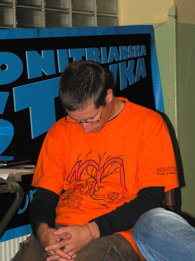 Prezentácia sa trocha natiahla, lebo veľa ľudí si samozrejme prosbu organizátorov (prísť s dostatočným predstihom) neveľmi bralo k srdcu. Ale nič dramatické, len štart bol posunutý na 7:15. Takže po srandovnom presune dvestohlavej masy cez nitriansky kruhák, ktorý bol sprevádzaný vyvalenými očami spoza volantov, hlavný spolupáchateľ Rado pozdvihol megafón a...