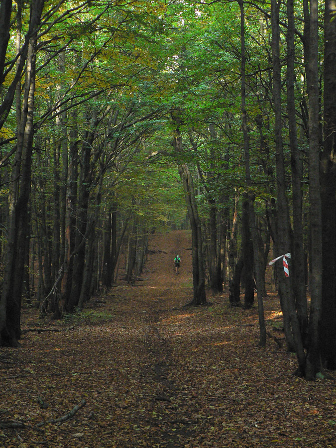 Cesta do Veľkého Poľa - tie tiene ako naprotiveň sú zas „proti predpisom“. Dole v krčme sa dozvedám, že Maťo Kais riadne ušiel Ivovi Mudroňovi (skoro pol hodinu v porovnaní s 5 minútami v Kostoľanoch) a druhá dvojka sa rozpadla - Miki Kéri kŕčuje, ak vraj niekoho neukecá na turistické tempo, končí. K9 na 72 kiláku je inak dosť zlomový bod, tu veľa ľudí končí pravidelne - stačí si predstaviť čo ich čaká ďalej s príchodom noci, stačí aj pohľad na profil trate :-)