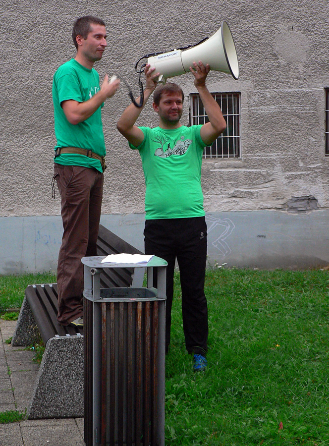 Skoré sobotné ráno v Handlovej, lebo po štyroch ročníkoch nastala zmena doslova revolučná: Rado a spol. otočili trasu. A ustúpili od striktnej červenej značky, tiež jedno veľké plus. Takže na začiatku ubudol „blatnatý tobogán“ pod Veľkým Gričom, išlo sa popod Malý (predrenci aj na). Taká geografická skratka: dlhšia, ale zato horšia cesta :-))) Inak blata ako na Spartane. Z Veľkého Poľa na Penhýbel pribudla cesta krásnymi, stále ešte rozkvitnutými lúkami, namiesto otravného asfaltu. Paráda! Pod Krížnymi cestami síce naopak trochu asfaltu navyše, ale kto pozná ten úsek červenej značky, isto neprotestoval. Kto to tam značil, asi sa veľmi nudil a zároveň sa inšpiroval cyklistickými pretekmi, všaaak? Fotky vysvetlia.