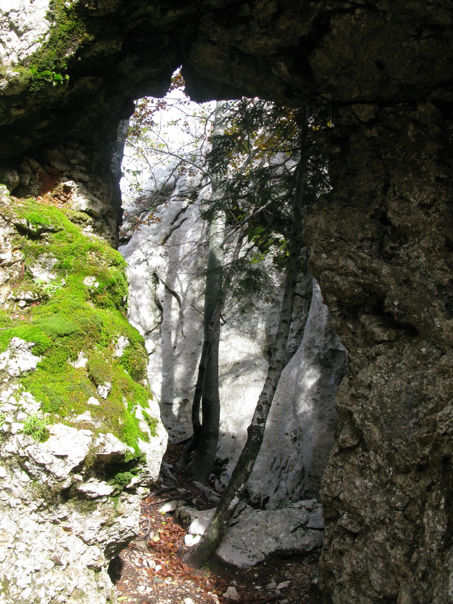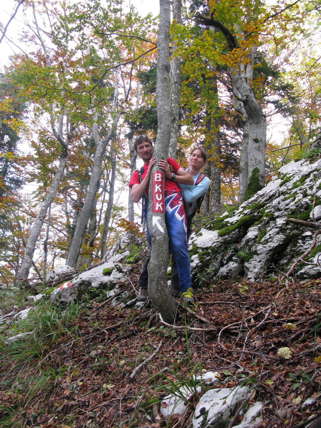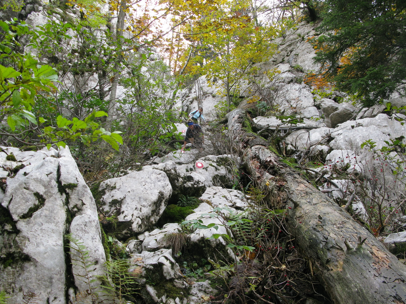 Po prestávke na chate (nikoho sme nestretli) prišlo na rad to, po čo sme sem prišli. Krátky presun bukovým pralesom, ktorý o drevorubačoch ešte nepočul, a stojíme pri rázcestníku. Put Malog princa je okruh, dal by sa ísť oboma smermi. Rozhodujeme sa ísť vpravo a okruh tak zakončiť výstupom na Bili Kuk. Zakrátko prichádzame po dobre vyznačenom chodníku k prvej "atrakcii", ako sme ich neskôr nazvali.