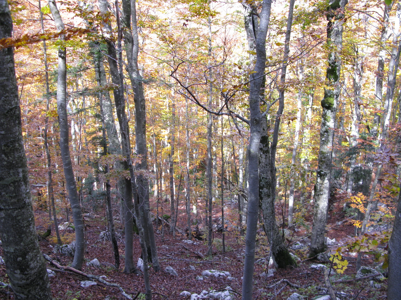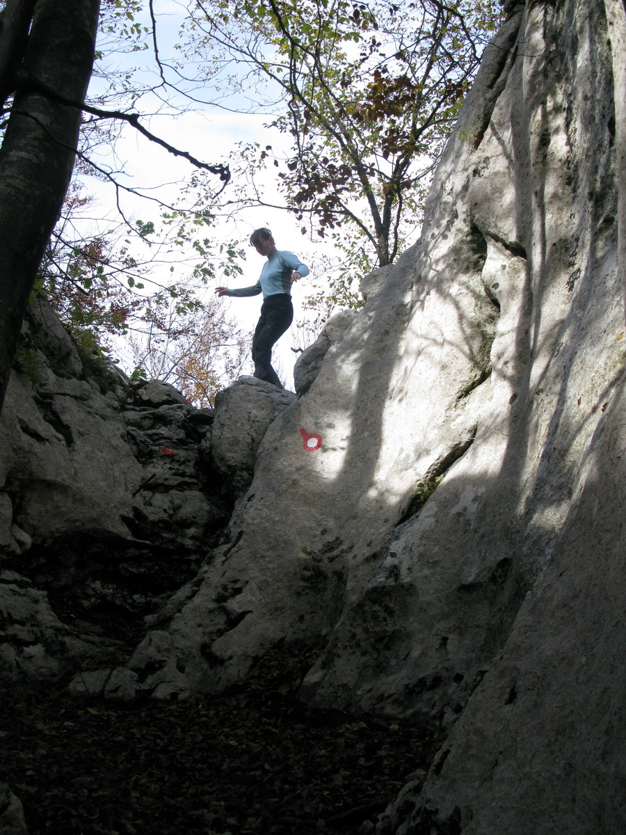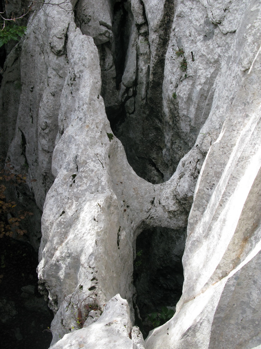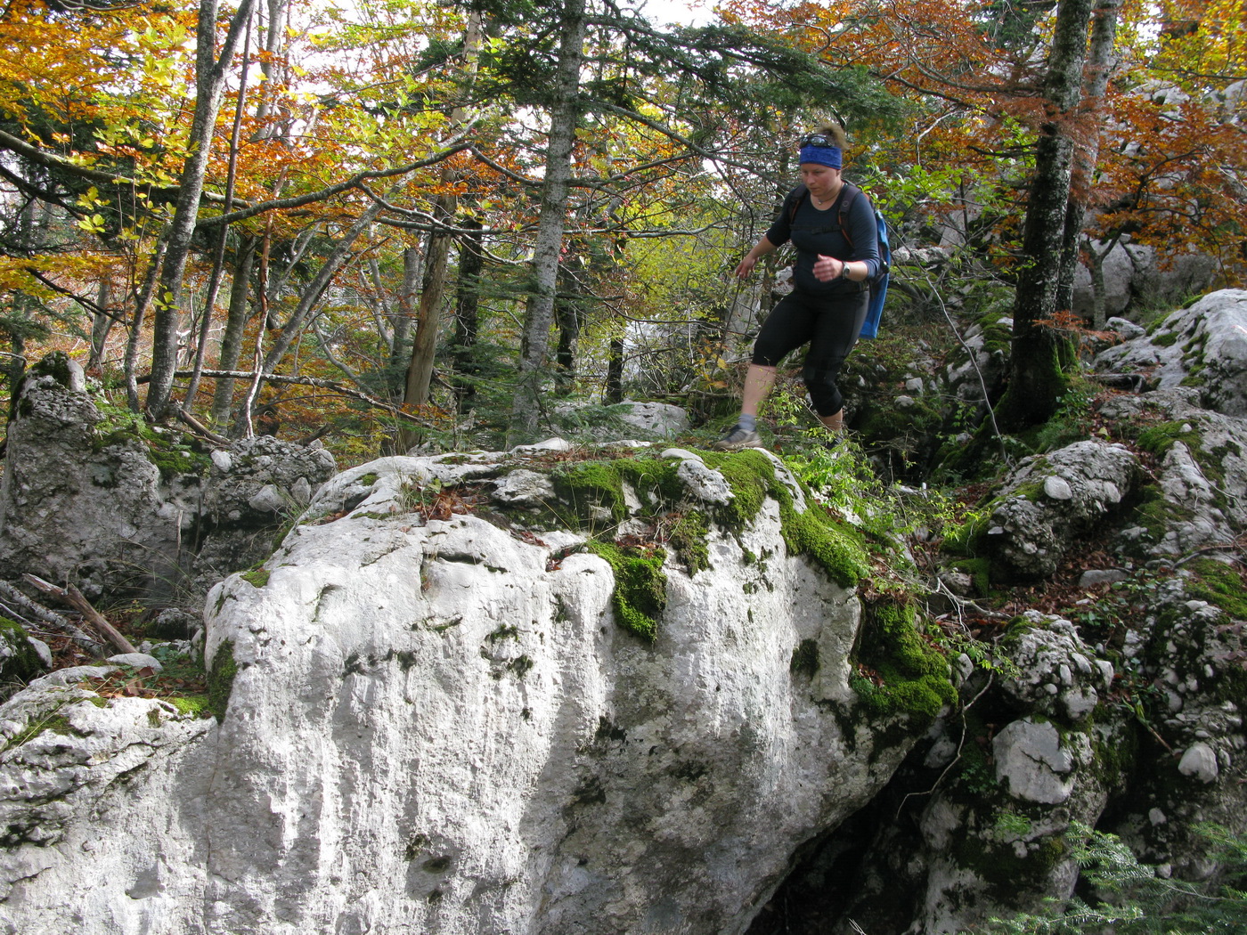 Po prestávke na chate (nikoho sme nestretli) prišlo na rad to, po čo sme sem prišli. Krátky presun bukovým pralesom, ktorý o drevorubačoch ešte nepočul, a stojíme pri rázcestníku. Put Malog princa je okruh, dal by sa ísť oboma smermi. Rozhodujeme sa ísť vpravo a okruh tak zakončiť výstupom na Bili Kuk. Zakrátko prichádzame po dobre vyznačenom chodníku k prvej "atrakcii", ako sme ich neskôr nazvali.