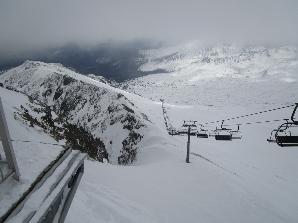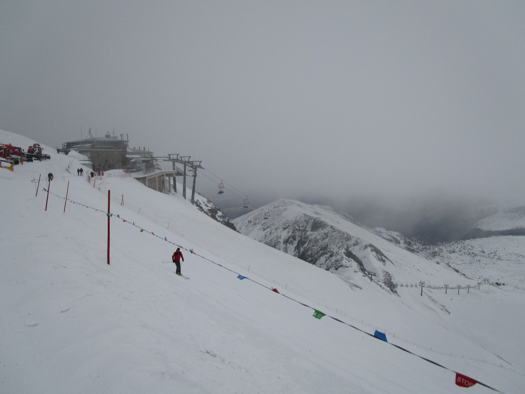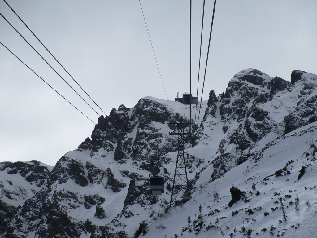 Bezchybná jazda lanovkou hore na Wierch Kasprowy (1987m). Pozorujeme spolucestujúcich, Kasprák je fakt pútne miesto ale keď sme hore v stanici popíjajúc čajík pozorovali akí ľudia vystupujú z lanovky aj sme si jazík popálili. :))