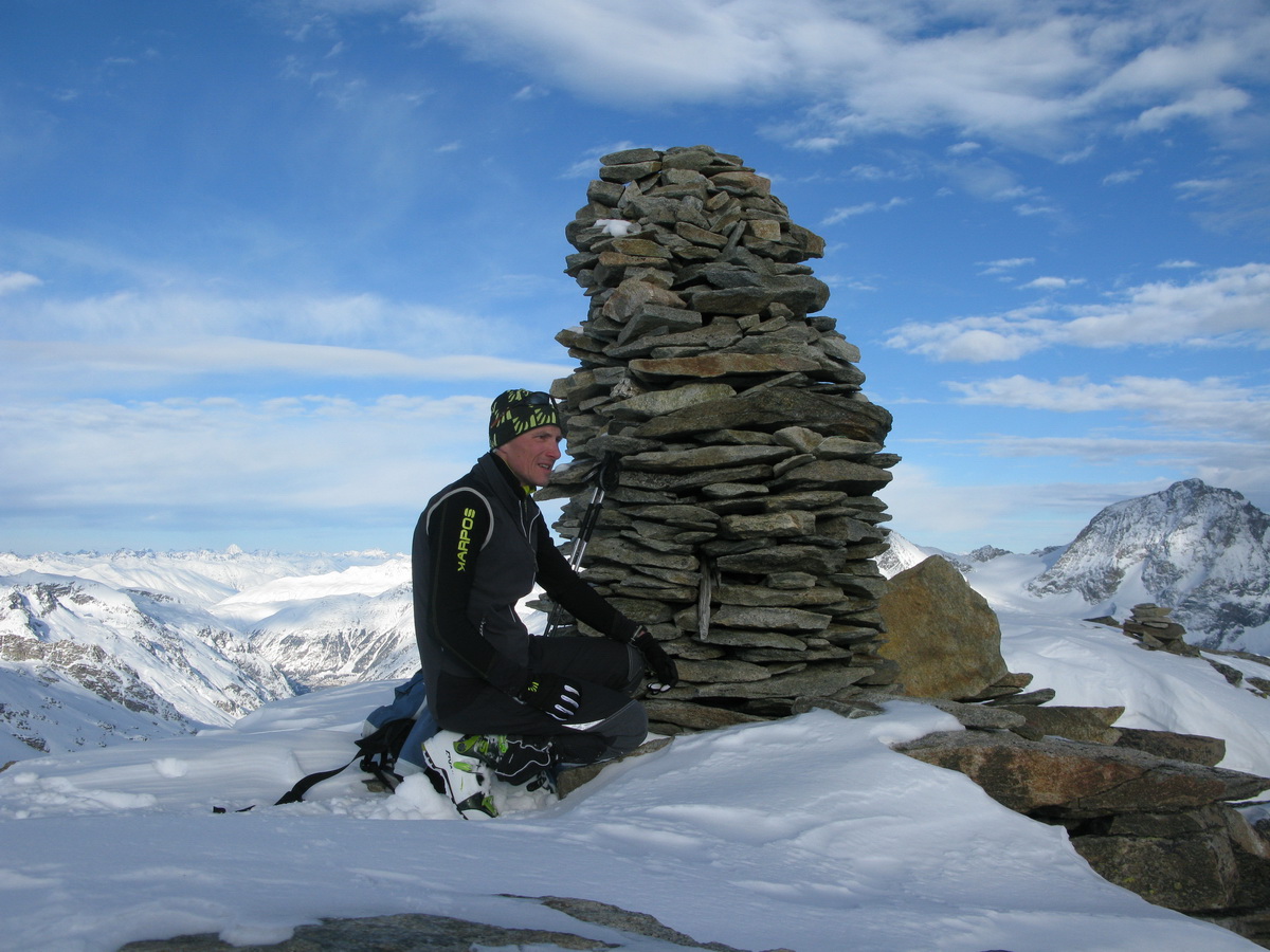 Čas: Prešlapávanie stopy mi trvalo skoro 5 hodín, skialpinistický sprievodca udáva len z chaty Coaz (2610m) na vrchol 3 hod. a 780 v.m.