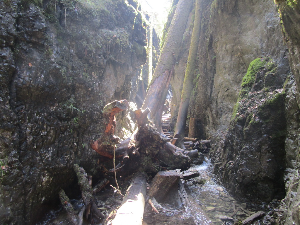 Po veternej kalamite spred pár rokov je v rokline množstvo popadaných stromov, tie však len umocňujú dojem divočiny. Zoberte si lepšiu obuv, lebo suchou nohou tu neprejdete ani za pekného počasia.