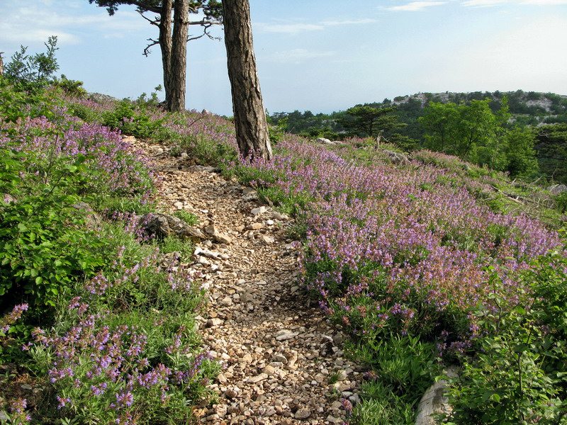 Mali sme so sebou 2,5 litra vody (nikde ju nedoplníte) a na začiatku bolo veru pekne horúco. Neskôr sme vošli do lesa poznačeného požiarom a už bolo príjemne chladno až do konca túry. Na vrchol nám to trvalo od kláštora cca 2,5 hod. aj s fotením. Chodníček viedol rôznorodým terénom a keď k tomu pridám výhľady, tak môžem konštatovať len jedno: - super