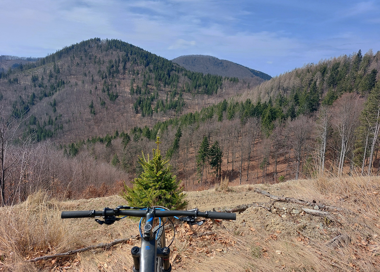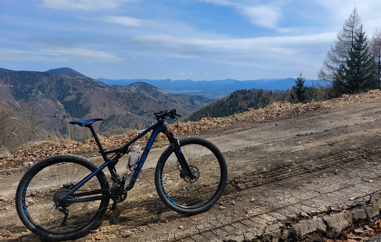 Asi 30-kilometrový okruh v Lúčanskej Malej Fatre, na turčianskej strane, okolo doliny so známym lyžiarskym strediskom. Tréningový preto, lebo chrtivý potenciál je tam vysoký, estetický o dosť nižší, miestami sa prepadá hlboko do mínusu. Najmä na severnom okraji doliny, kade som sa štveral hore. Ale pod kolesami pohodlná, zväčša rovná šotolina, samé lesné cesty, žiadne prekvapenia, aj gravel by sa miestami nudil. No héééj, aj výhľady sú – cez rúbaniská na rúbaniská. Aj hlboko do riedkych lesov vidno, lebo veľa tých ciest je surových, nových, ešte im okraje nestihli zarásť. Tak je to vhodné aj pre medveďofóbov. Čiernych kôpok sa tam na cestách vždy niekoľko nájde :-)