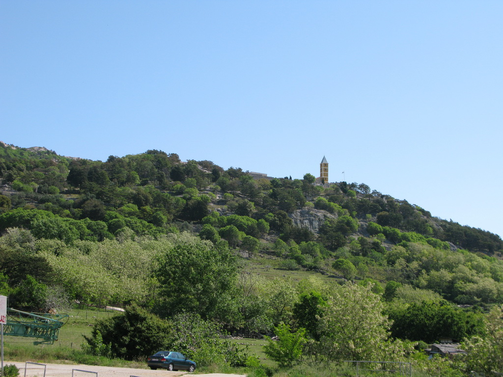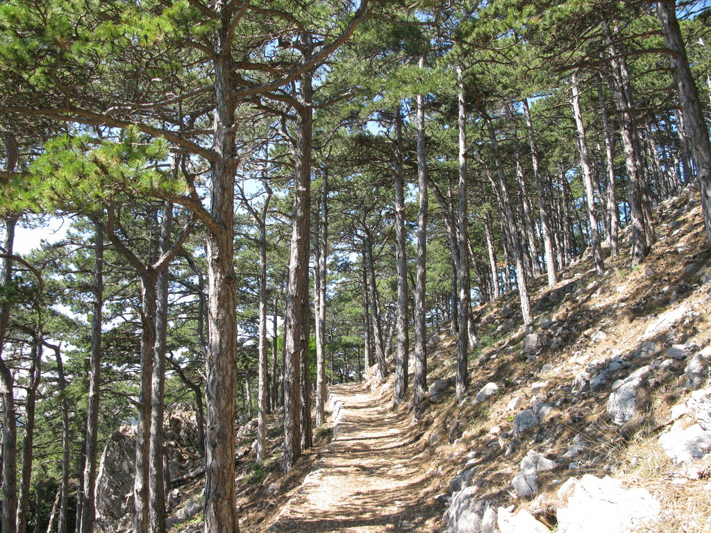 Kukli sme do mapy a cieľ sme vybrali pomerne ľahko: Najvyšší vrch vpravo od Bašky sa volá Hlam 461m. Najprv po pekných serpentínach ku kostolu sv. Ivana a potom už štrkovým chodníčkom šliapeme smerom hore krásnym borovicovým lesom. Vyrušili sme riadnu hadicu. Treba si dávať pozor! Zvyšok túry už počas šliapania dávame pozor pod nohy. Výhľady si potom vychutnávame v stoji bez pohybu. Táto taktika sa osvedčila aj po zvyšok pobytu. A veru hadov sme tu videli neúrekom...