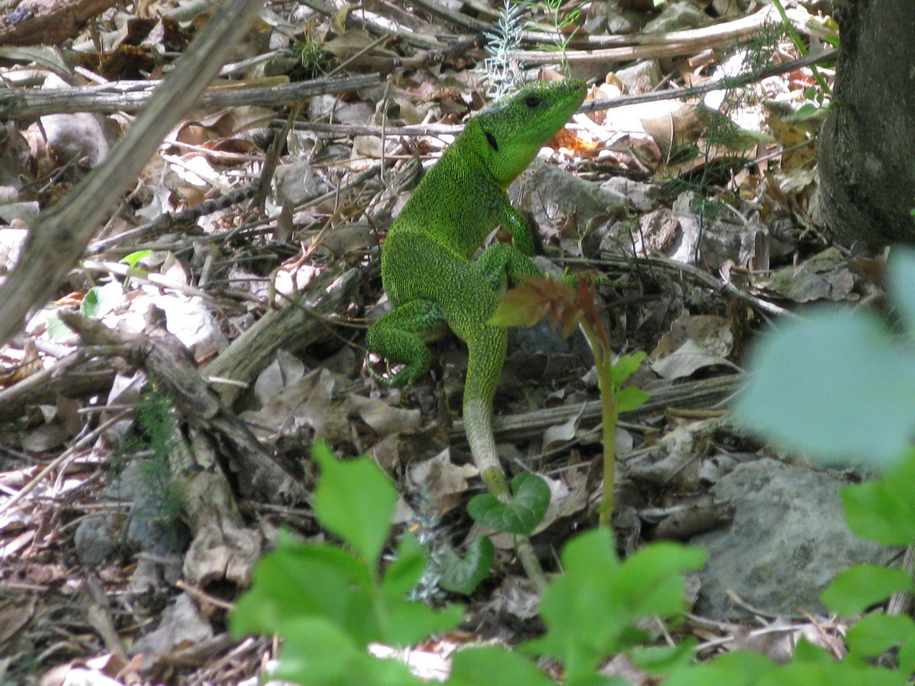 Ďalej už pokračujeme planinou, okolo prírodného jazierka, ktoré slúži ako napájadlo pre ovce na vrchol Hlam. Pre istotu je tu jazierko aj betónové, to aby mali všadeprítomné ovce čo piť. Vychutnáme výhľady na ostrovnú krajinu. Cestu dole volíme po zelenej. Odbočíme ešte na vyhliadku Zakam a podarí sa nám aj odfotiť miestne pre nás neznáme tvory. Jašterice to asi neboli, tie sú kúsok menšie..