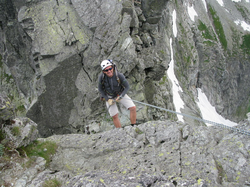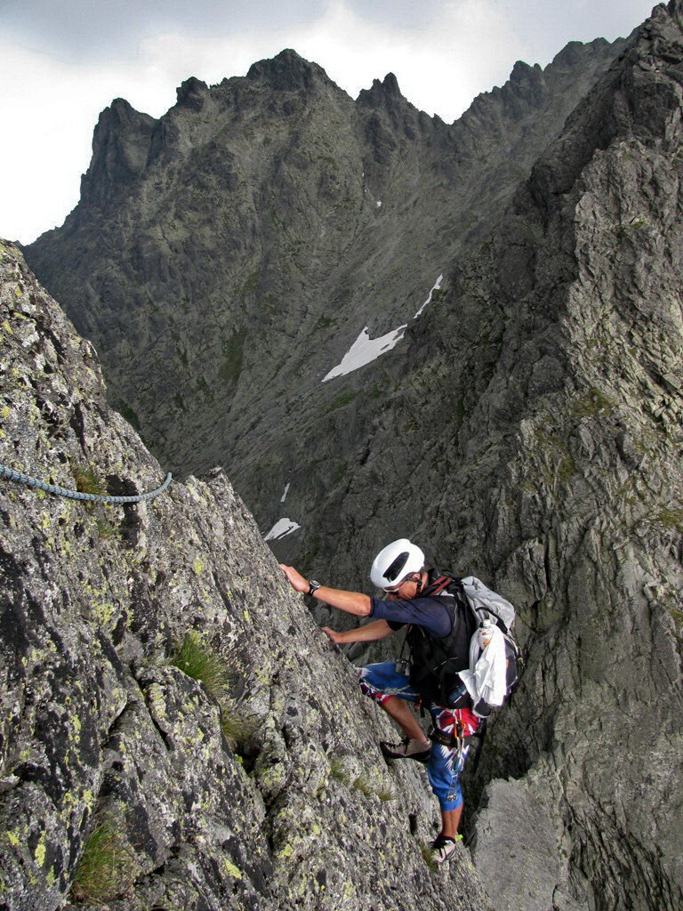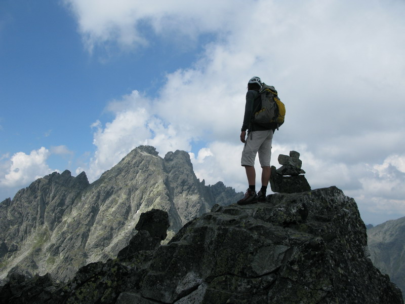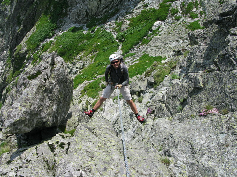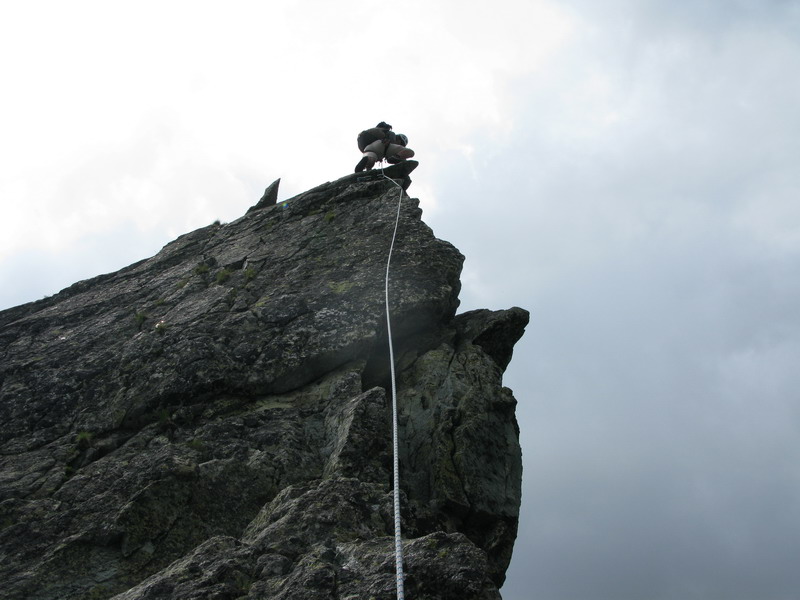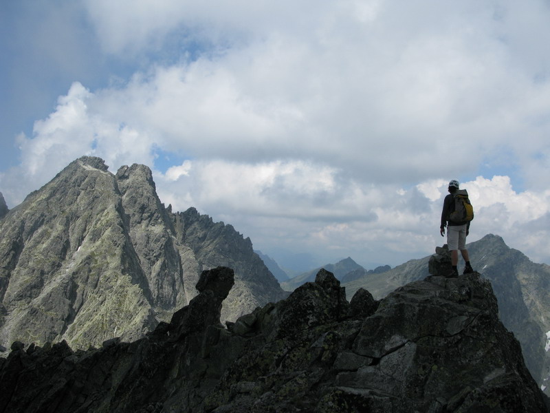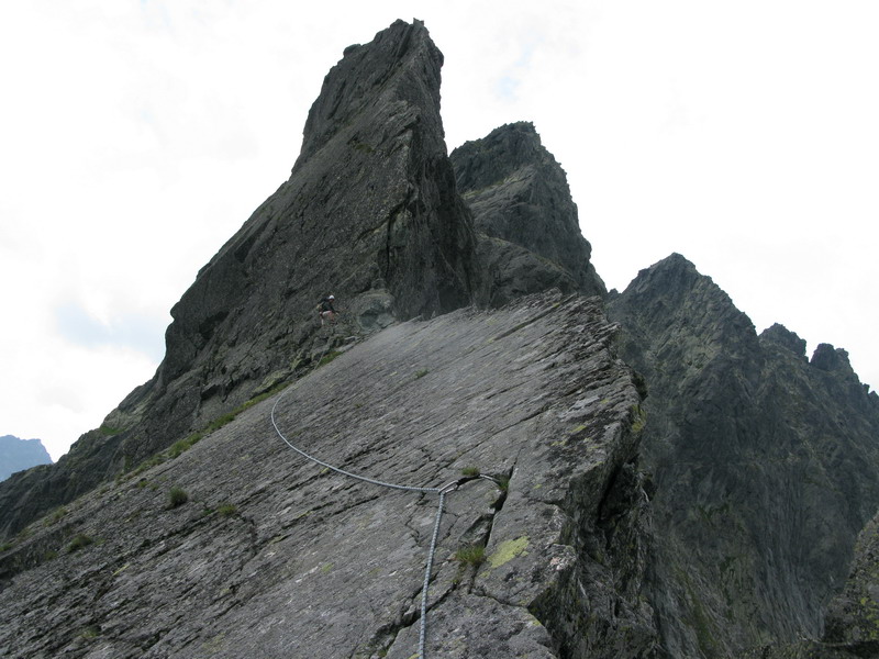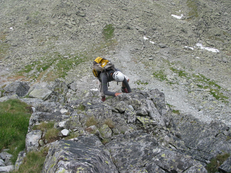 Na vrchol vyliezame zo sedla medzi Gankom a Rumanovým. Lano zostalo v batohu aj keď to bolo celkom zaujímavé. Šťastie nám praje, z prevaľujúcich sa mrakov neprší a tak rýchlo na Ganek. Za chvíľu sme hore a vychutnávame si výhľady. Začína sa vyjasňovať a nálada stúpa.