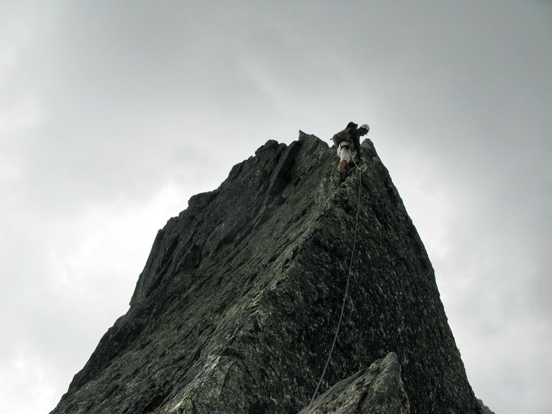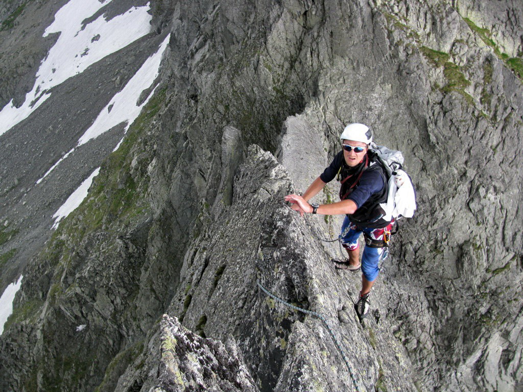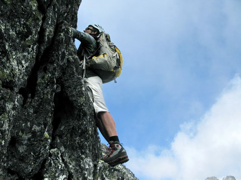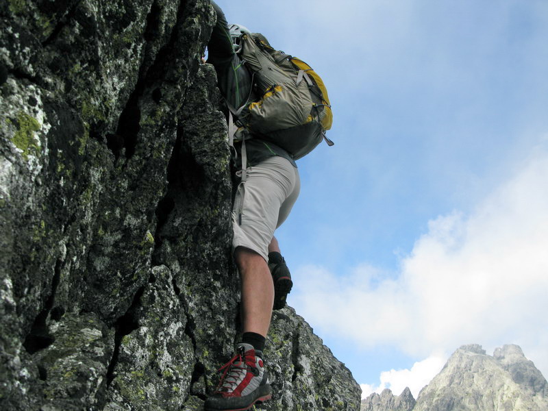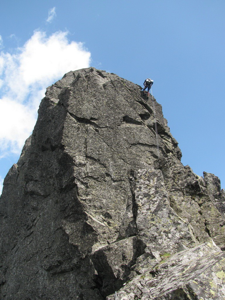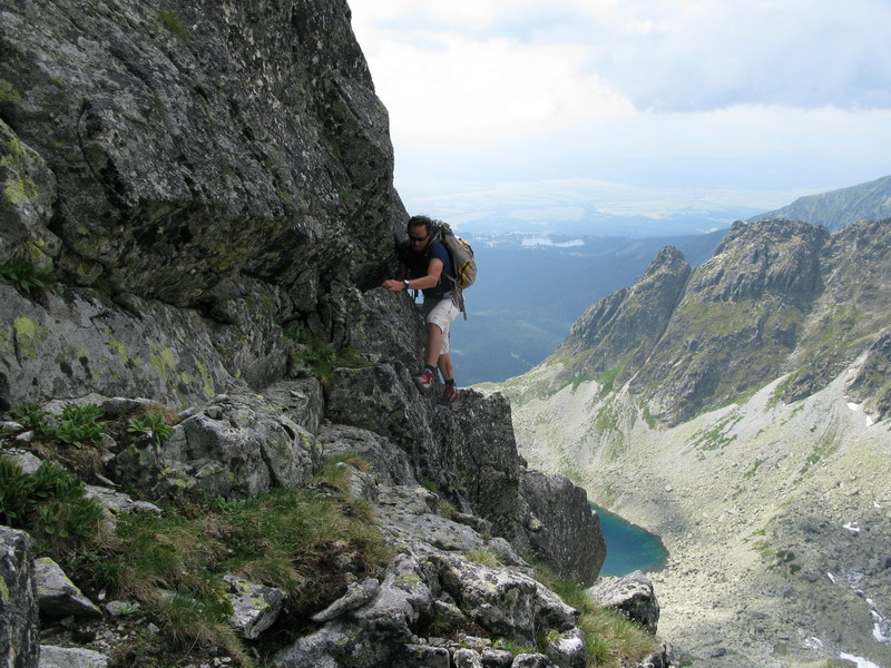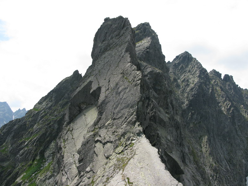 Na vrchol vyliezame zo sedla medzi Gankom a Rumanovým. Lano zostalo v batohu aj keď to bolo celkom zaujímavé. Šťastie nám praje, z prevaľujúcich sa mrakov neprší a tak rýchlo na Ganek. Za chvíľu sme hore a vychutnávame si výhľady. Začína sa vyjasňovať a nálada stúpa.