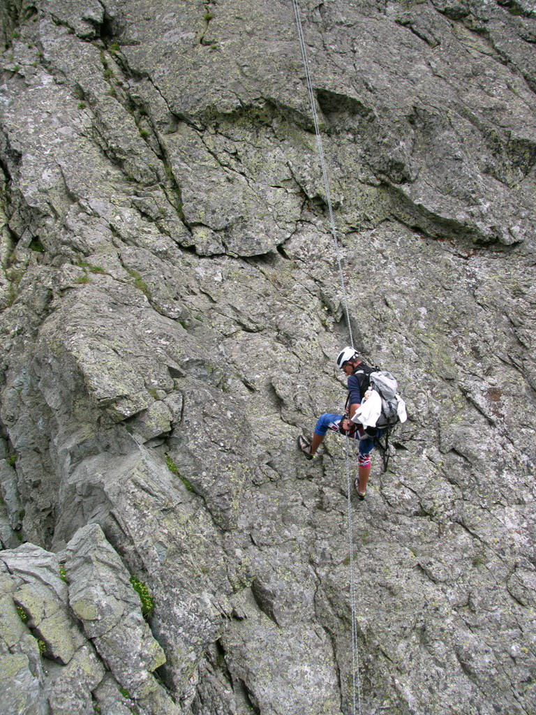 Počasie nám praje a tak sa po výdatnej pauze presúvame pod náš poobedňajší cieľ - Žabí kôň. Hovorí sa mu aj maturita horolezca. Krásna hrebeňovka, na začiatku aj konci okorenená zlaňákmi. Vychutnávame si hrebeň keď v druhej dĺžke sa priženie mrak a skalu nám fajne pokropí. Nevadí, aspoň to je po šmykľavej skale zaujímavejšie.