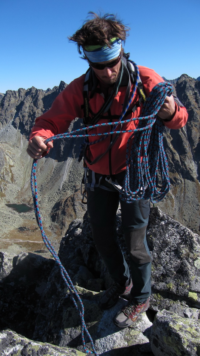 Nie je odveci ovládať dobre techniku istenia na krátkom lane. Na dvojicu mať jedno lano... My sme boli traja. Ale boli sme dostatočne rýchli. Náš cieľ sme splnili. Z Bystrého sedla sme zostúpili dole Furkotskou dolinou. Takto sme mali na záver dňa ešte slniečko.
