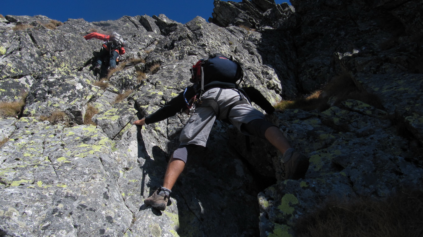 Partia, ktorá bola na začiatku za nami, to strihla niekde dole do doliny, neprišli až do Bystrého sedla. Aj keď sa takéto hrebene javia ako pomerne ľahké túry, tak by som ich radil nepodceňovať. Na veľa miestach totiž treba sólovať, čiže ísť bez istenia, keď sa chce človek niekam dostať.