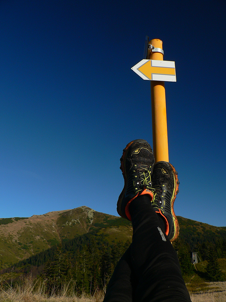 Ďalší poveget na vyhriatej lúke, ešte krátky traverz do sedla pod Suchým a už len klasika: cesta „rozprávkovým lesom“ popod Maguru, aj keď už nie plnofarebným, lebo sa medzitým slnko schovalo za horizont. Chata obkľúčená zo všetkých strán, ani nezastavujem, aj keď „nemáme zpoždění“. Davy aj na chodníku cestou dole, lebo ozaj celý svet sa vybral na výlet nad inverziu. Ale nad Kľačanmi už nikoho a dole dedinou už len domáci sa mocú, možno som len dáky družstevný výlet predbiehal. Tak ešte odbočka do kulturáku a o pol hodinky (s modrým certifikátom v ruke) spokojne pokračujem jemným poklusom domov. Na parádu deň, konečne!