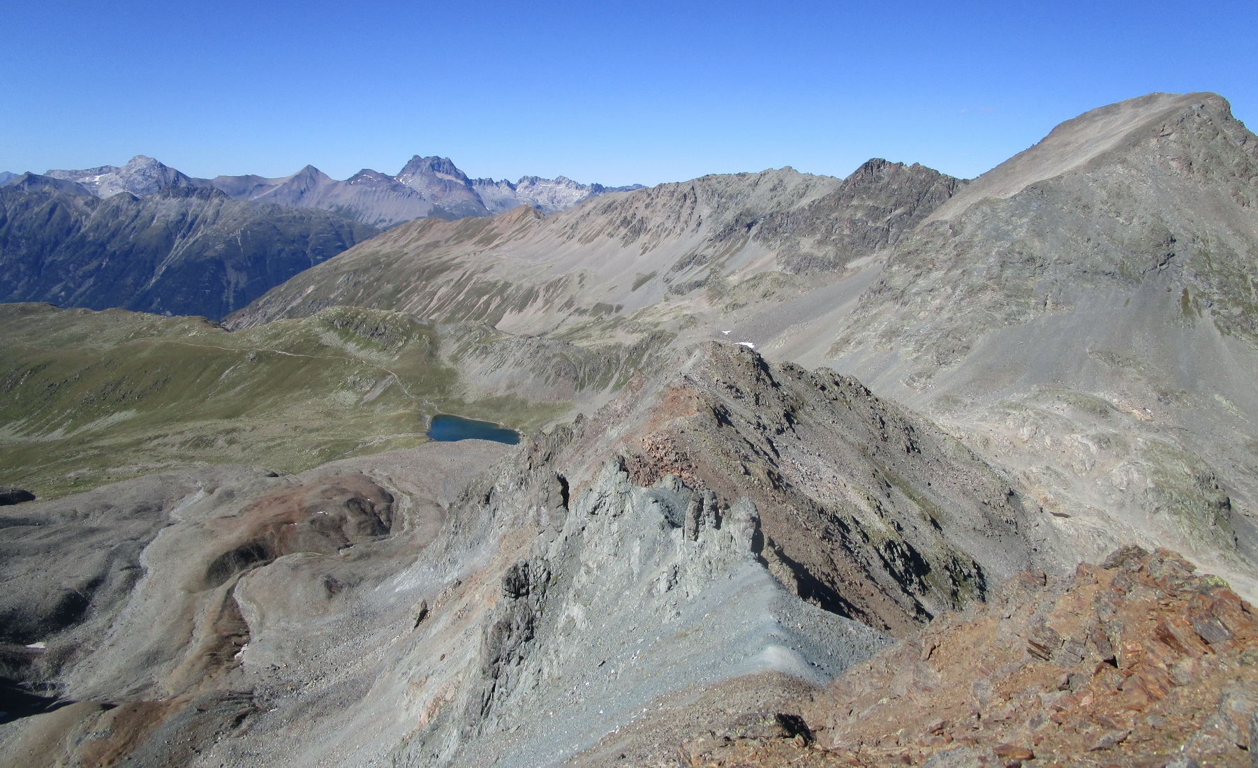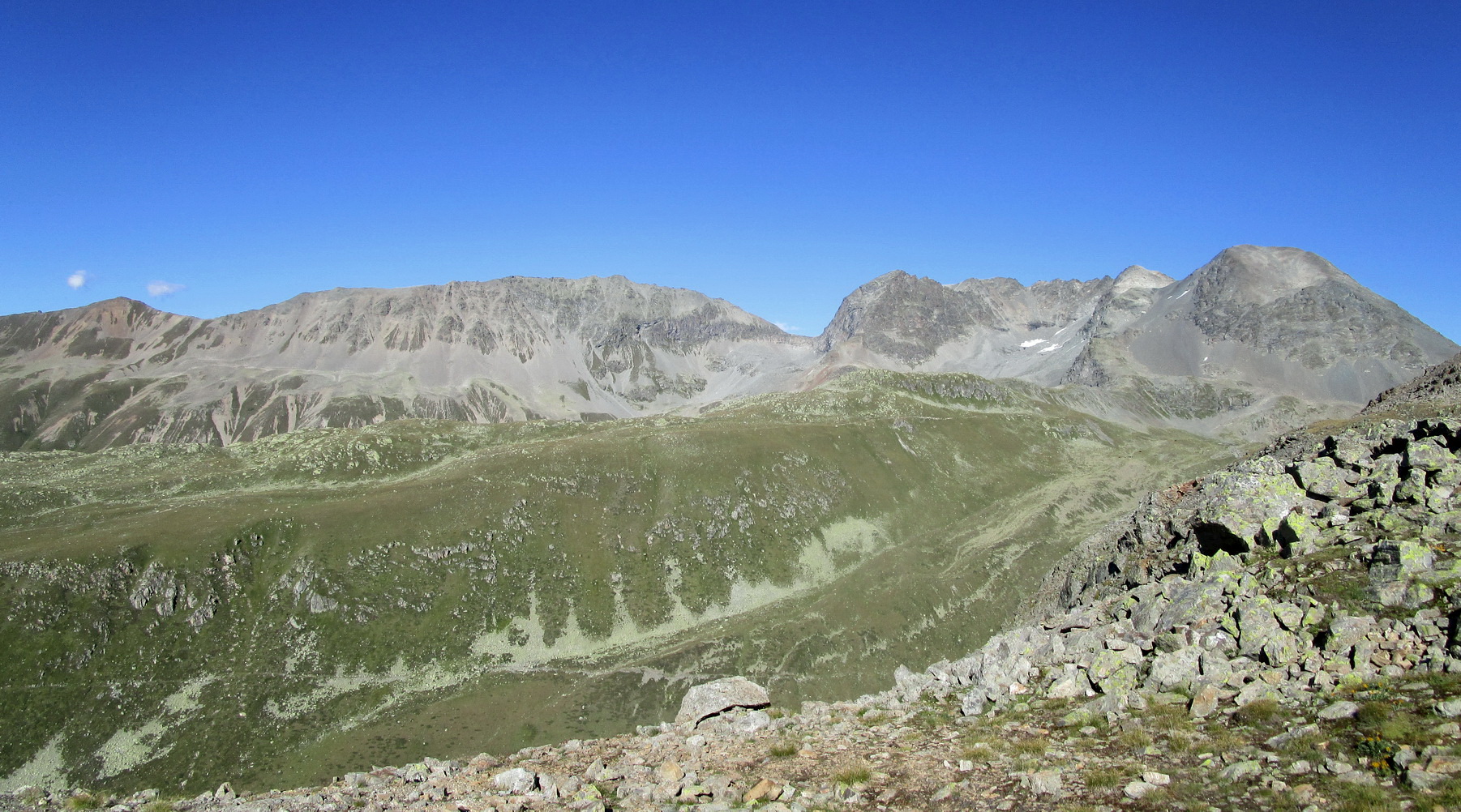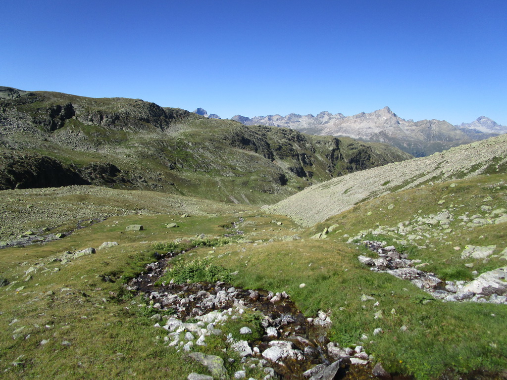 Po prekvapivom náhodnom stretnutí sa otáčam a vraciam sa naspäť hrebeňom spolu s Borisom. Pri zostupe z Fuorcly Burdun sa stretávame s trošku zložitejším terénom s voľnými kameňmi, ináč pohoda. Zostúpime spolu do Val Champagna, Boris sa vracia dolinou dole, doma už ho čaká rodinka a ja pokračujem ďalej na poobedňajší program.